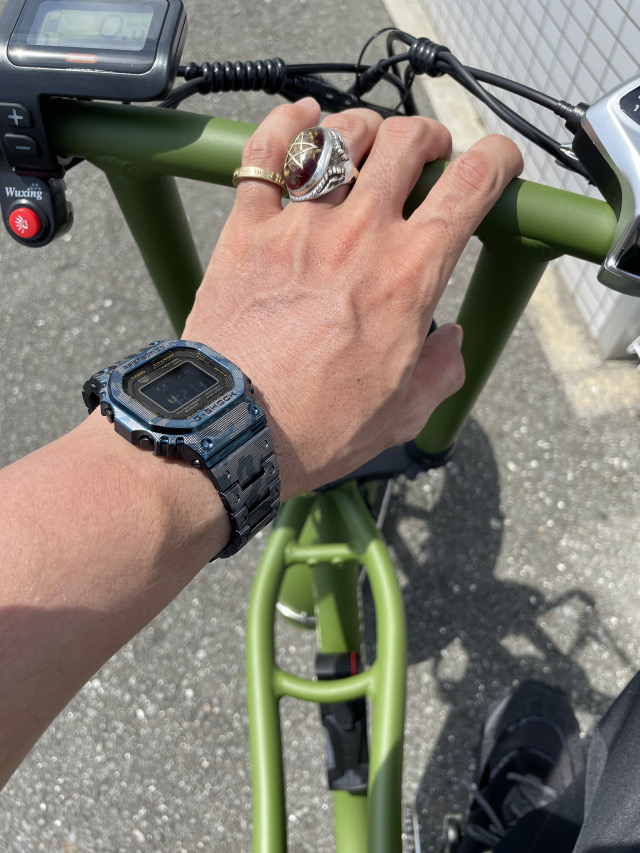 最近ご購入頂いたG-SHOCKはブルーのカムフラージュカラーをとても気に入って頂きお選び頂きました。太陽の下だとカムフラージュがしっかり映えいい感じですね!自転車に乗られる際でもアクティブに着用頂ける1本ですね!