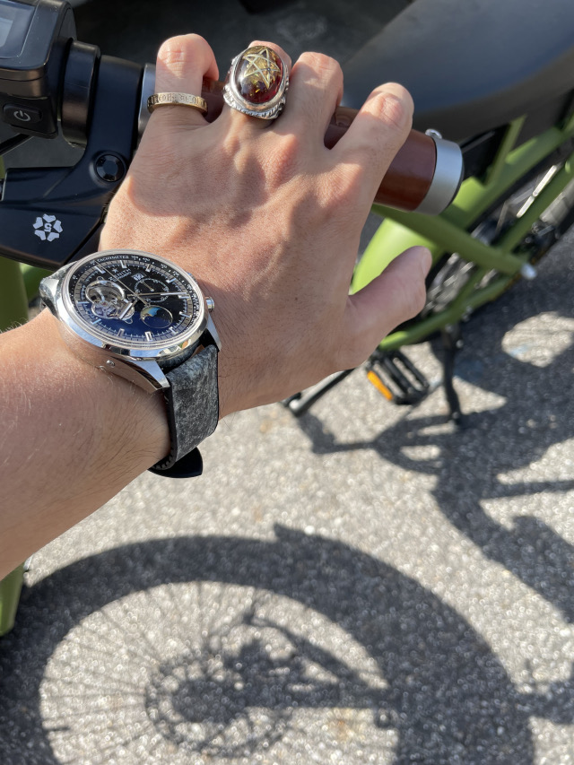 永くご愛用頂いているゼニスは最近「ヒルシュ製のストーンベルト」を着用頂きました。肌と接する裏面に天然ゴムを採用した特別なベルトの為、夏場の汗をかきやすい時期にもピッタリのベルトです!