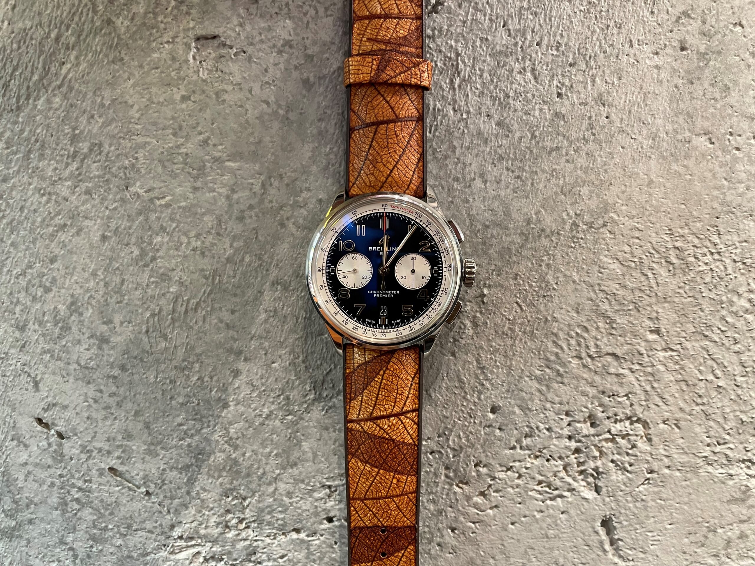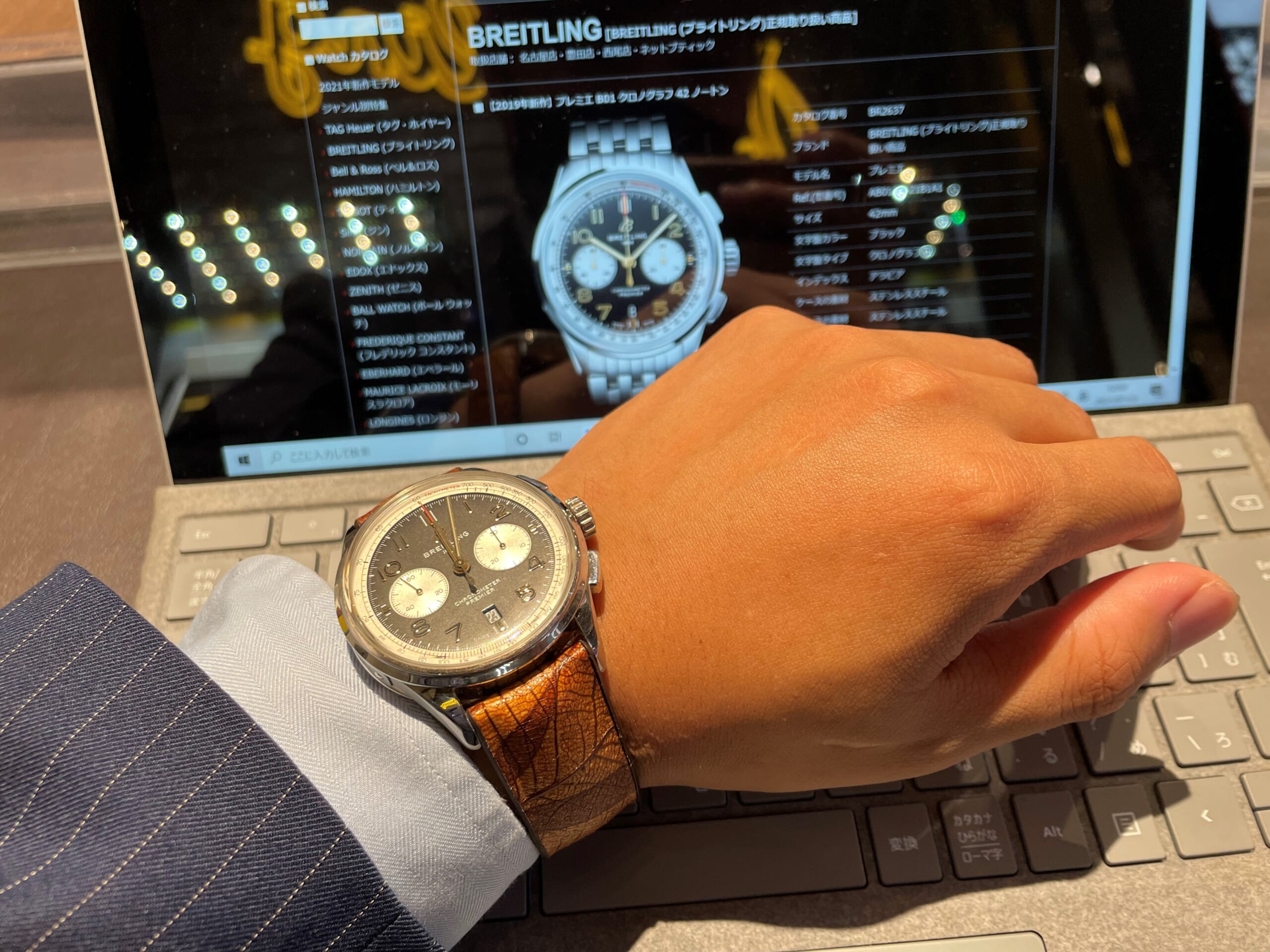 今回は番外編としてブライトリングの時計にヒルシュのベルトを着けてみました!