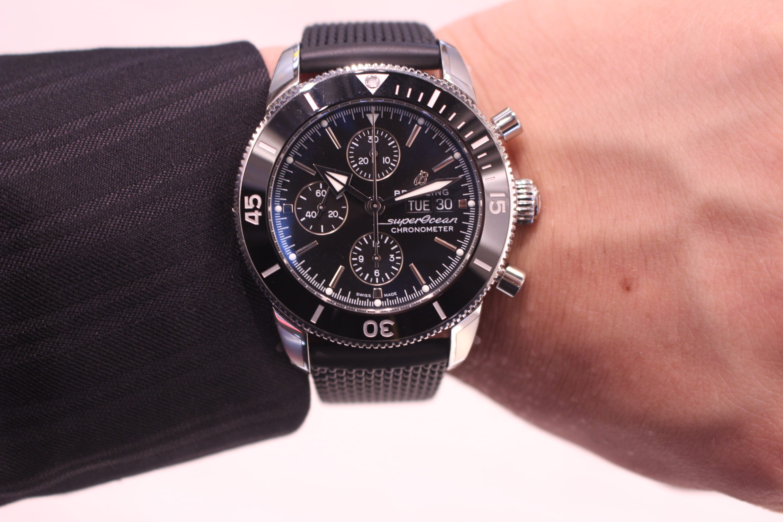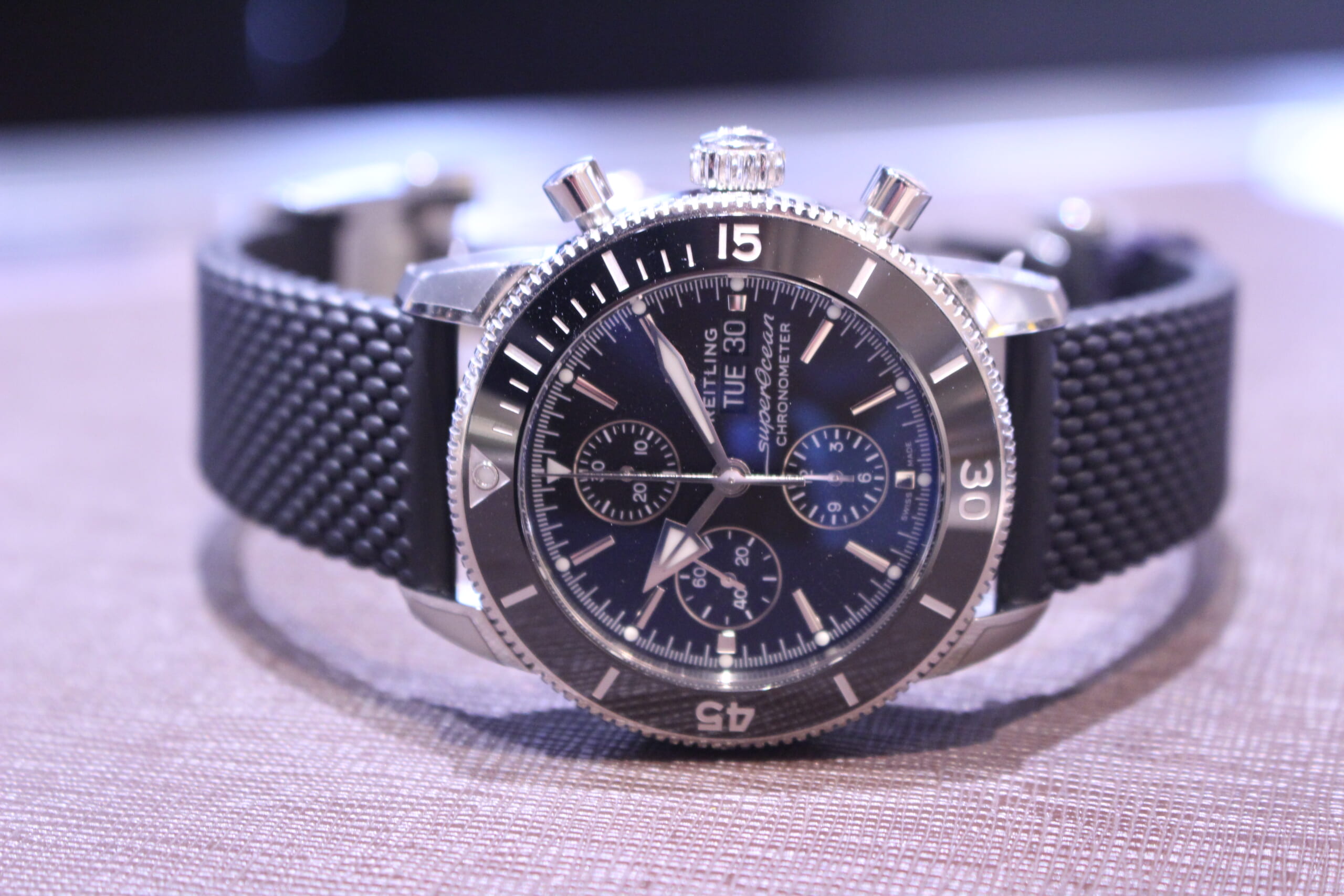 ぜひ、店頭にて、ブライトリングの時計の高級感をご自身の腕で