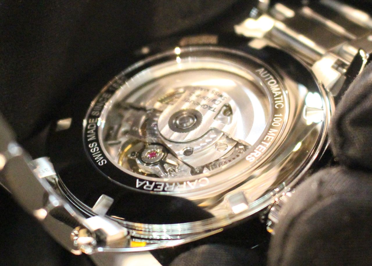 ケースバックはシースルーになっており自動巻きムーブメント キャリバー5の動きを見てお楽しみ頂けます