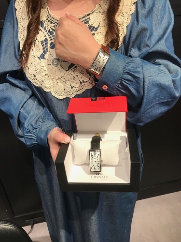 シルバーの文字盤にブラウンの革ベルトがふんわりとした印象でI様の優し気な雰囲気にとてもお似合いでした!!