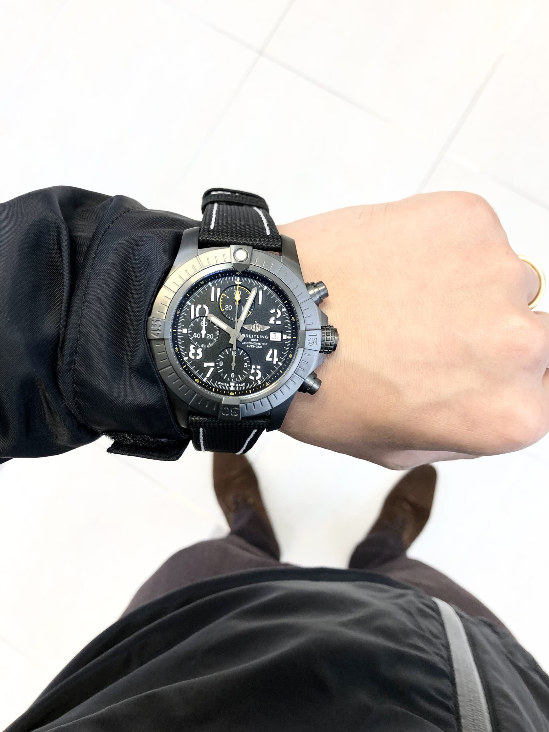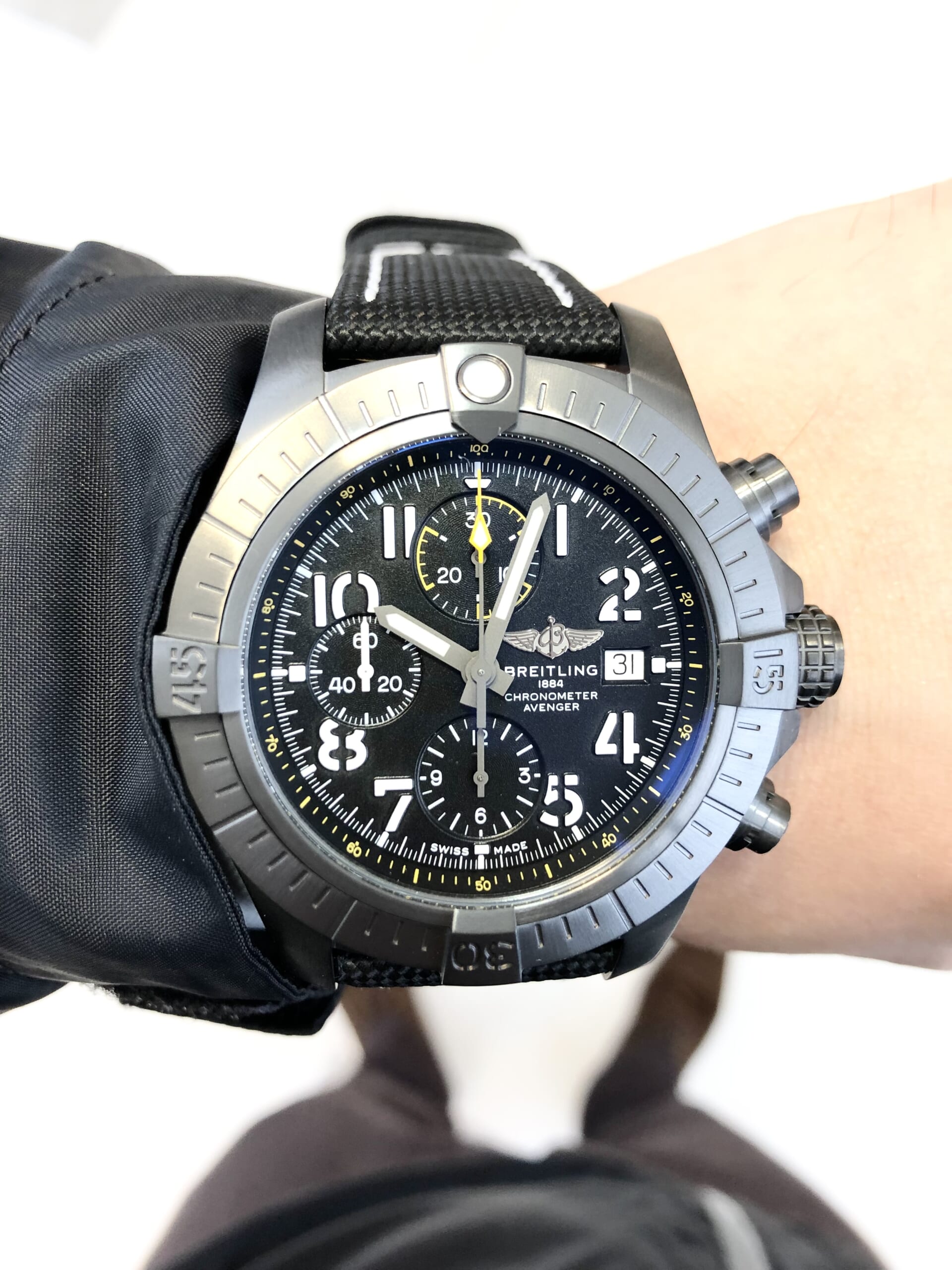 アベンジャー クロノグラフ 45 ナイトミッション! ブライトイングらしいモデルで大変かっこいいモデルです!