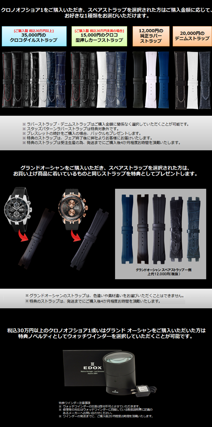・クロノオフショア1・グランドオーシャンクォーツモデルをご購入で純正スペアストラップをプレゼント