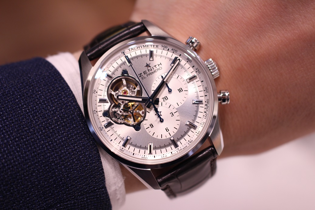 唯一無二のフェイスに42㎜の薄型ケース。デザイン・サイズ感共に時代やトレンドに左右されません。そしてここは外せない”オープンハート”、比類なき名機「エル・プリメロ」を開口部から覗く贅沢な仕様です。