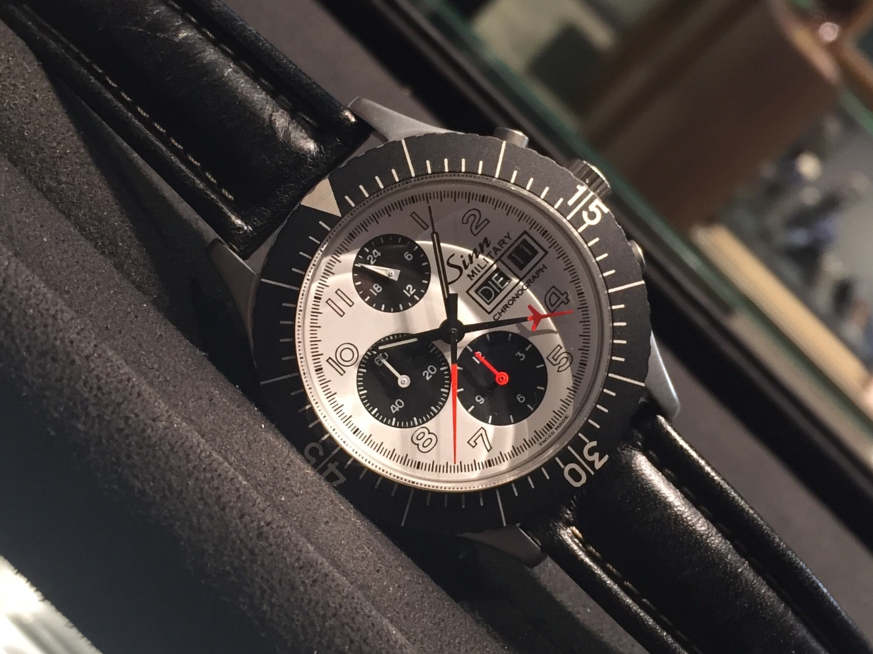 いささか武骨な形状はパイロット用クロノグラフとして典型的ですが、