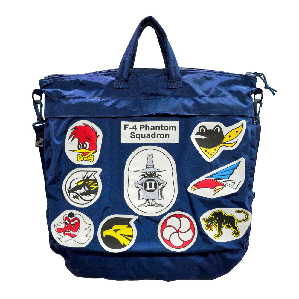 【限定付属品】8つの飛行隊の部隊マークのパッチを付けたヘルメットバッグ。