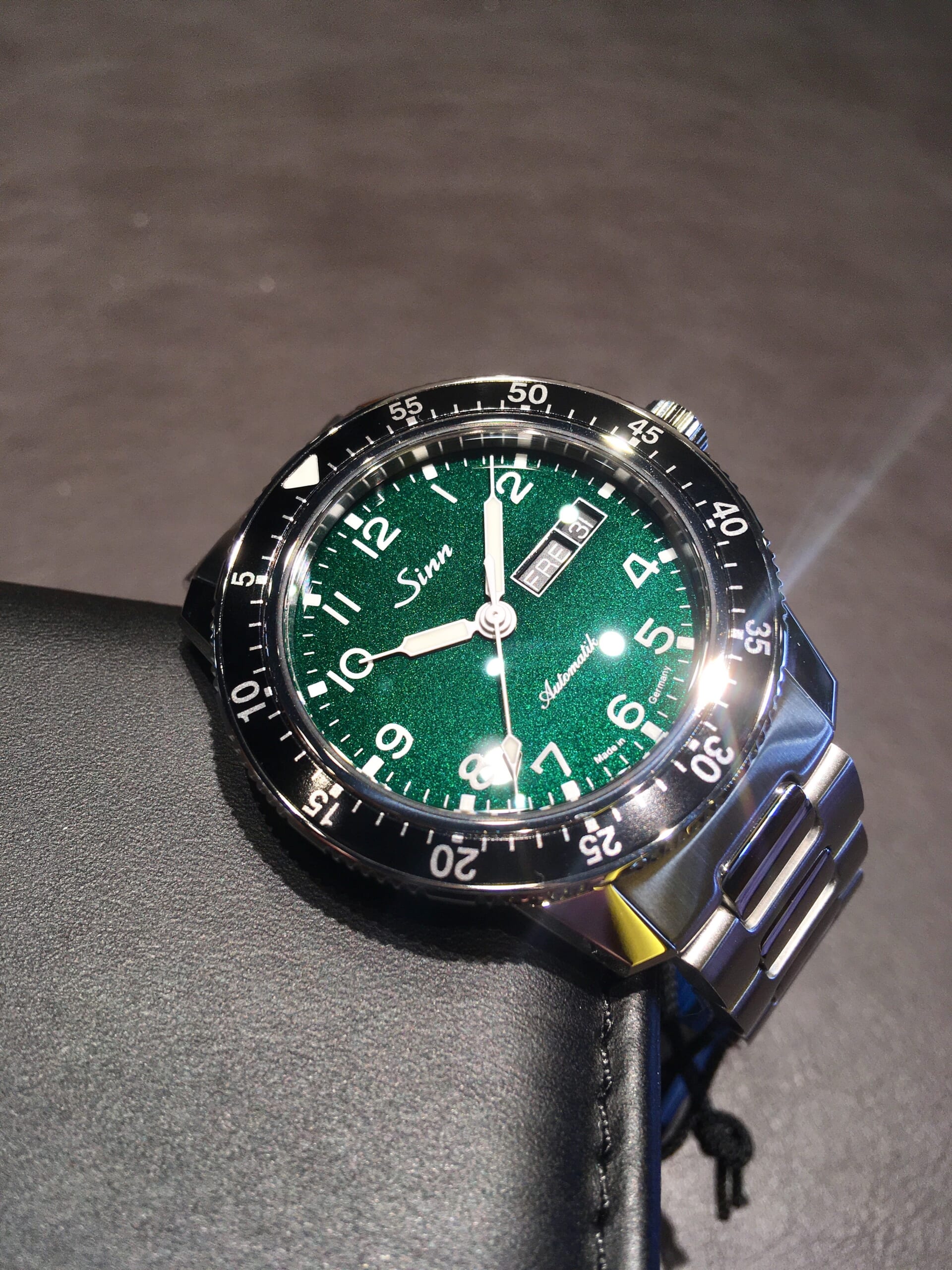 どこにもない独特のメタリックグリーンのダイヤルが特徴です。