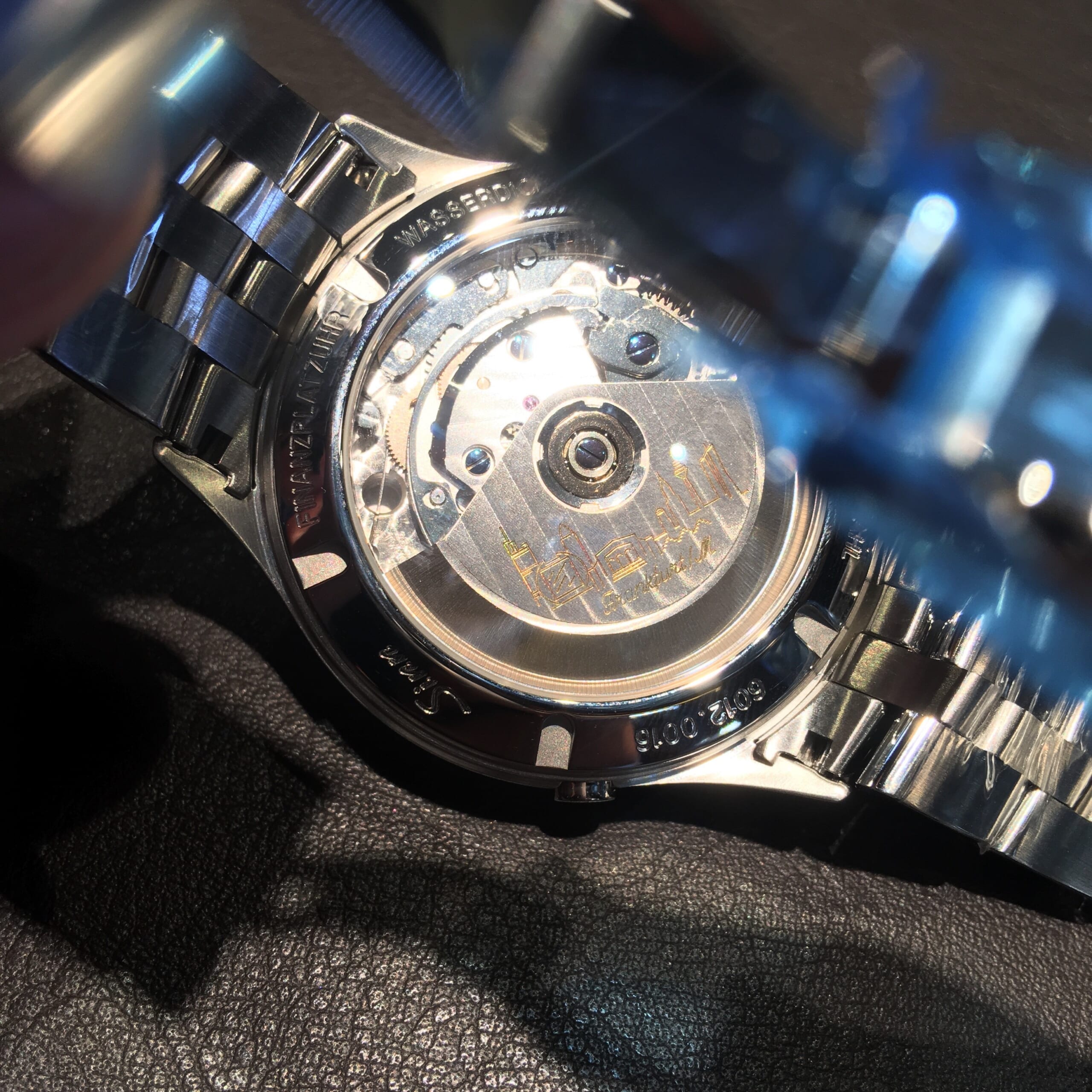 精巧に仕上げられたムーブメントのローターを飾っています。