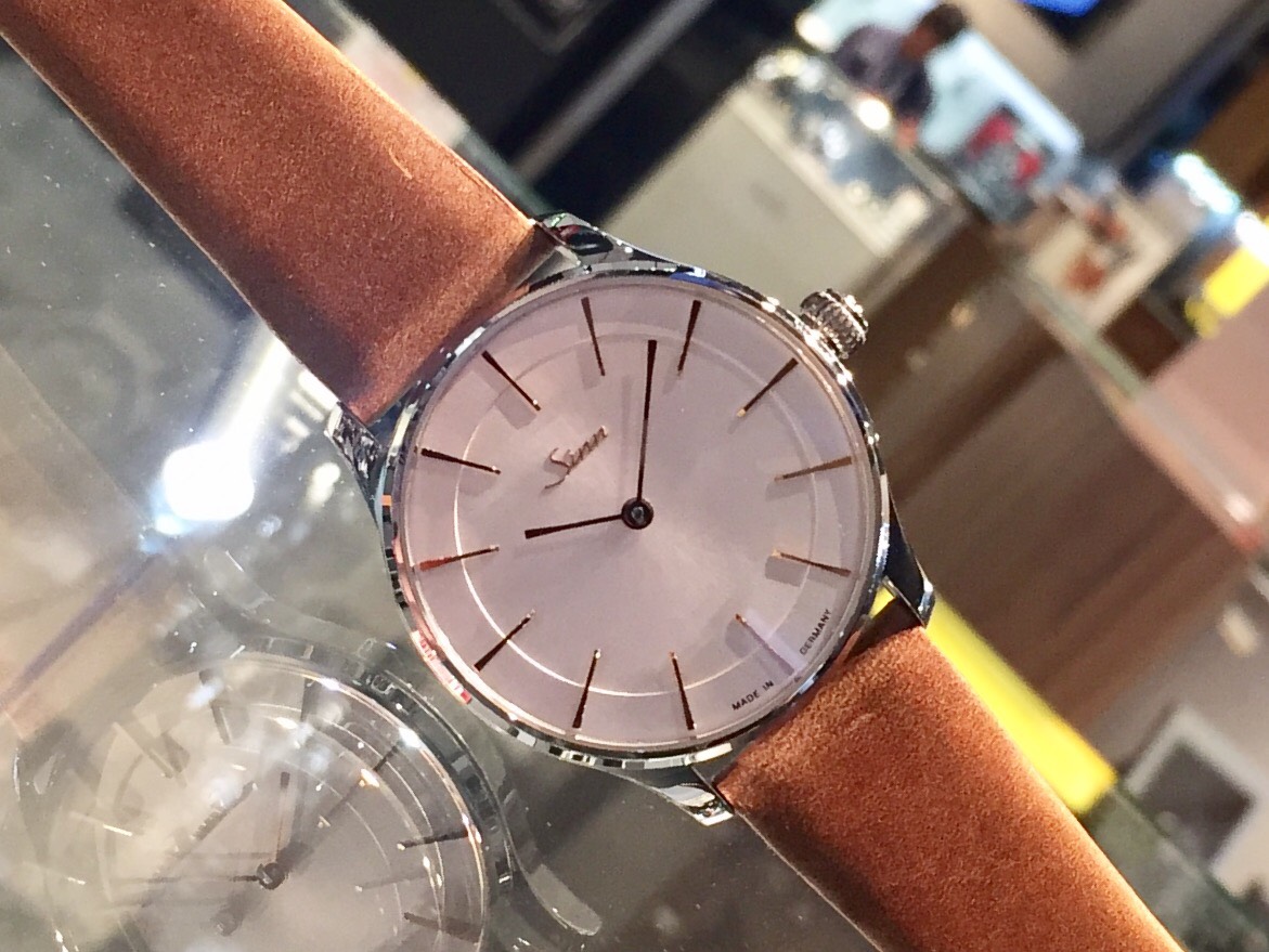 サンレイの装飾を施したシルバー仕上げのダイヤルといった