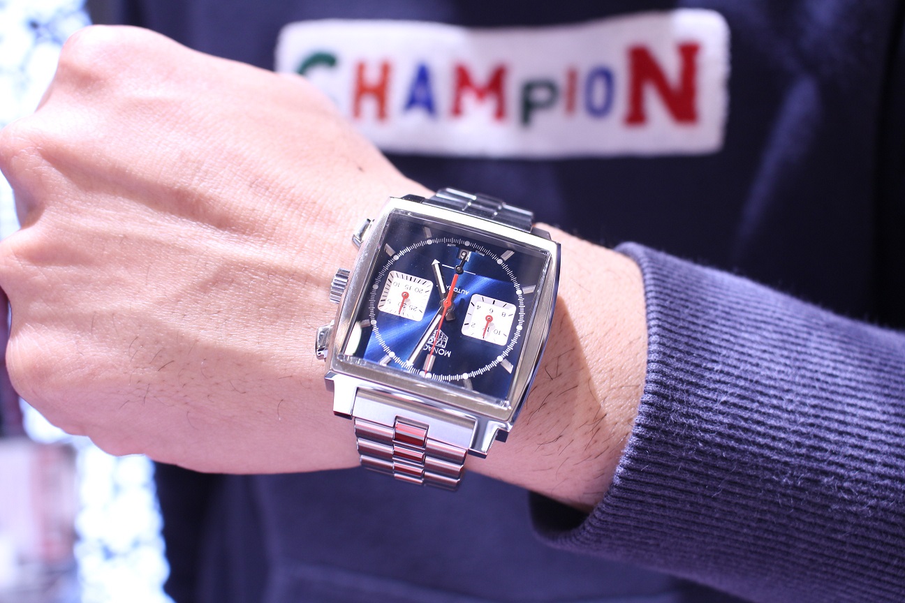 憧れの腕時計との出会いは突然来るものですね。フラッとお立ち寄り頂き以前から気にされていたタグホイヤーモナコを発見!