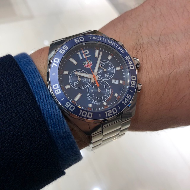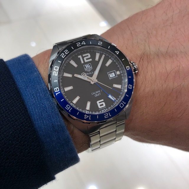 タキメーターベゼル搭載でこれぞフォーミュラ1と言うべきモデルです。