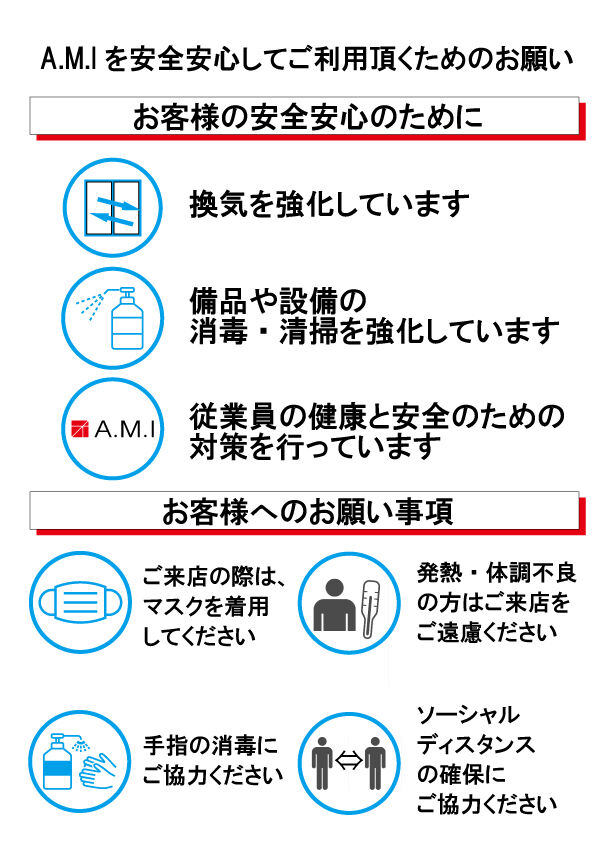 感染症予防対策は万全ですので、安心してご来店下さい!!