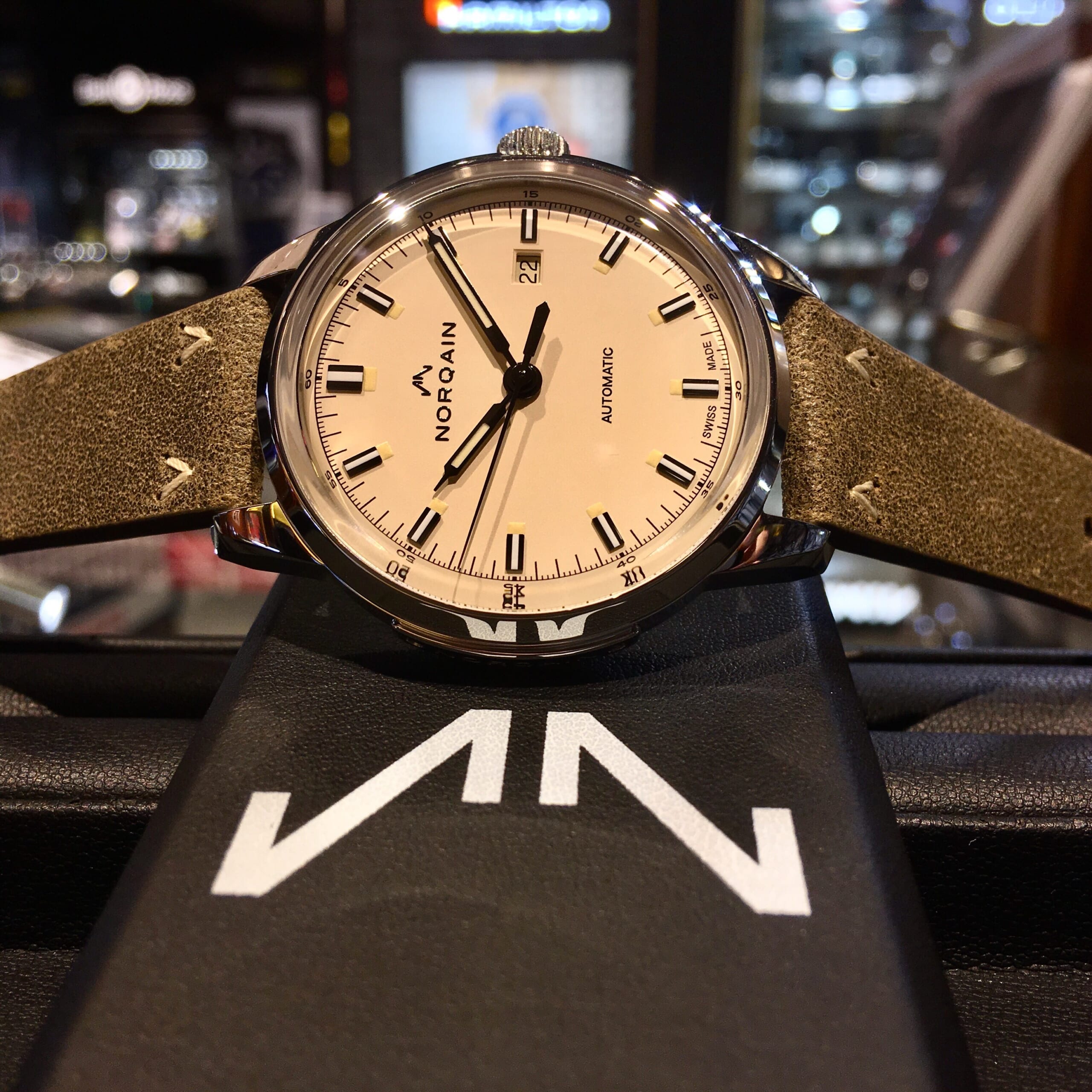 展開のなかったアイボリー文字盤が、