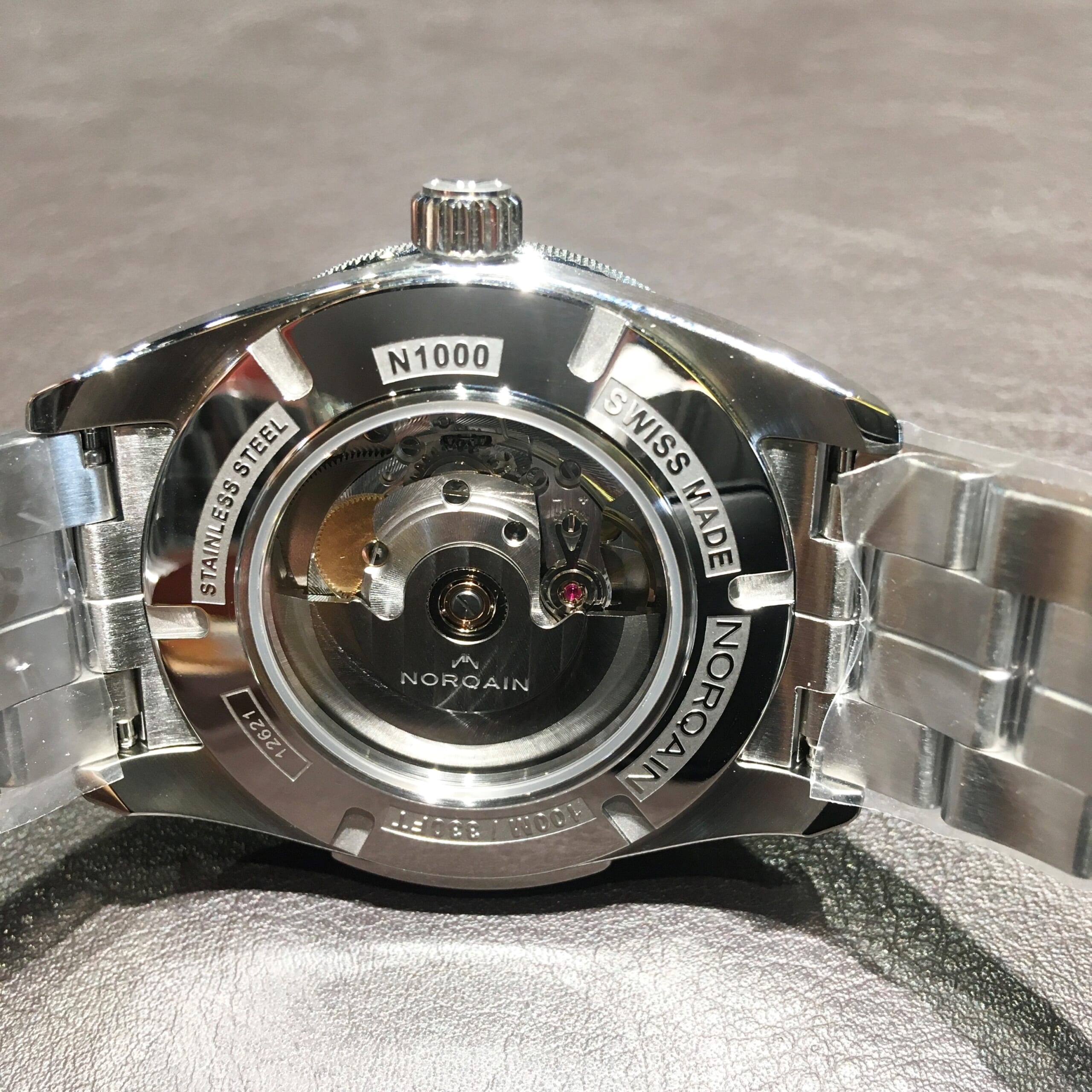 中のムーブメントが裏から見ることの出来るシースルーバック仕様です。