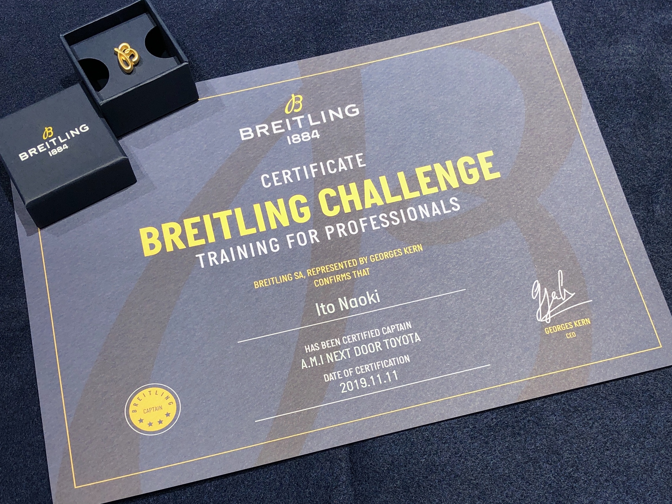 セールスマスターは、スイス・ブライトリング社の公認セミナーを受講した上で、スイス・ブライトリング社が提供しているE-learning「BREITLING CHALLENGE」でキャプテン・ランクを取得した販売員だけが持つ資格です。皆様からの質問やご相談に正しくお答えできるように商品知識や多くの情報を学んでいます。