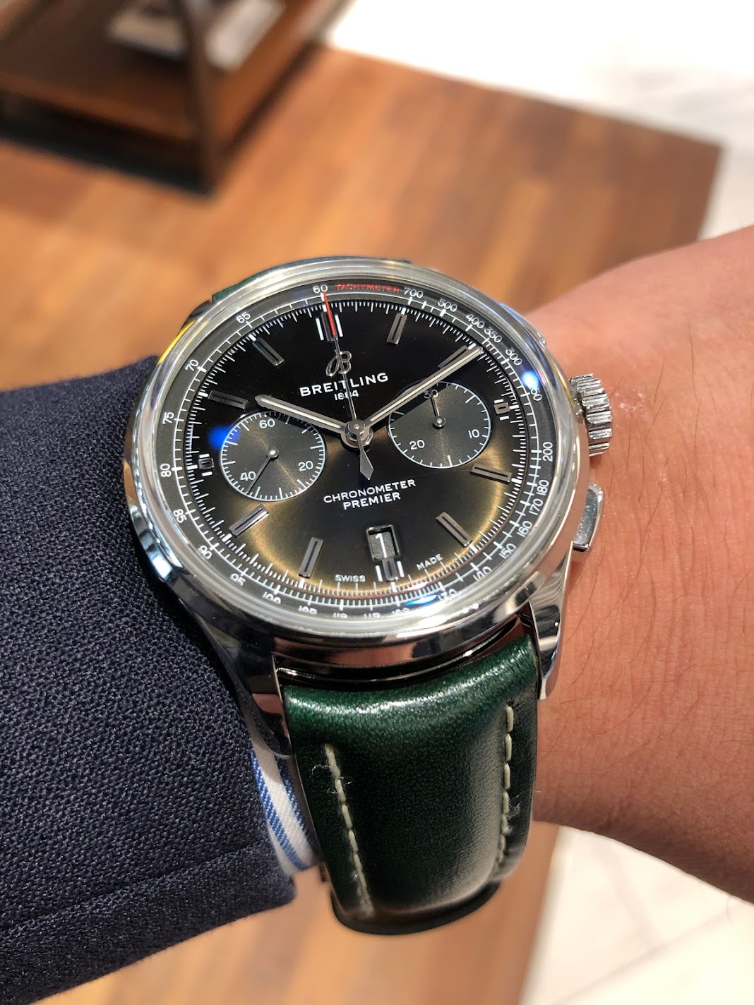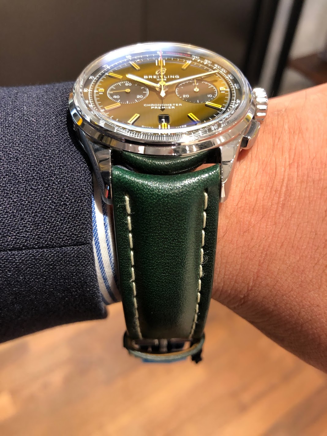 文字盤のグリーンカラーも非常に美しく明るすぎないところが特徴です!
