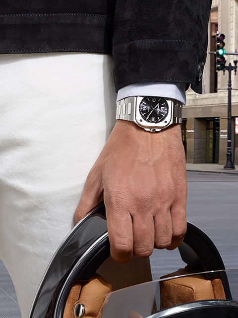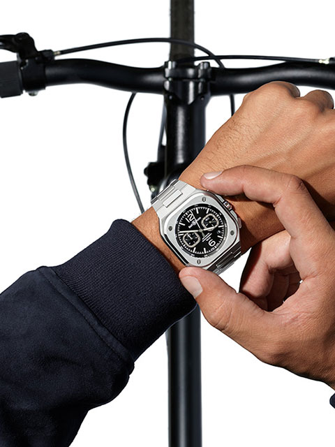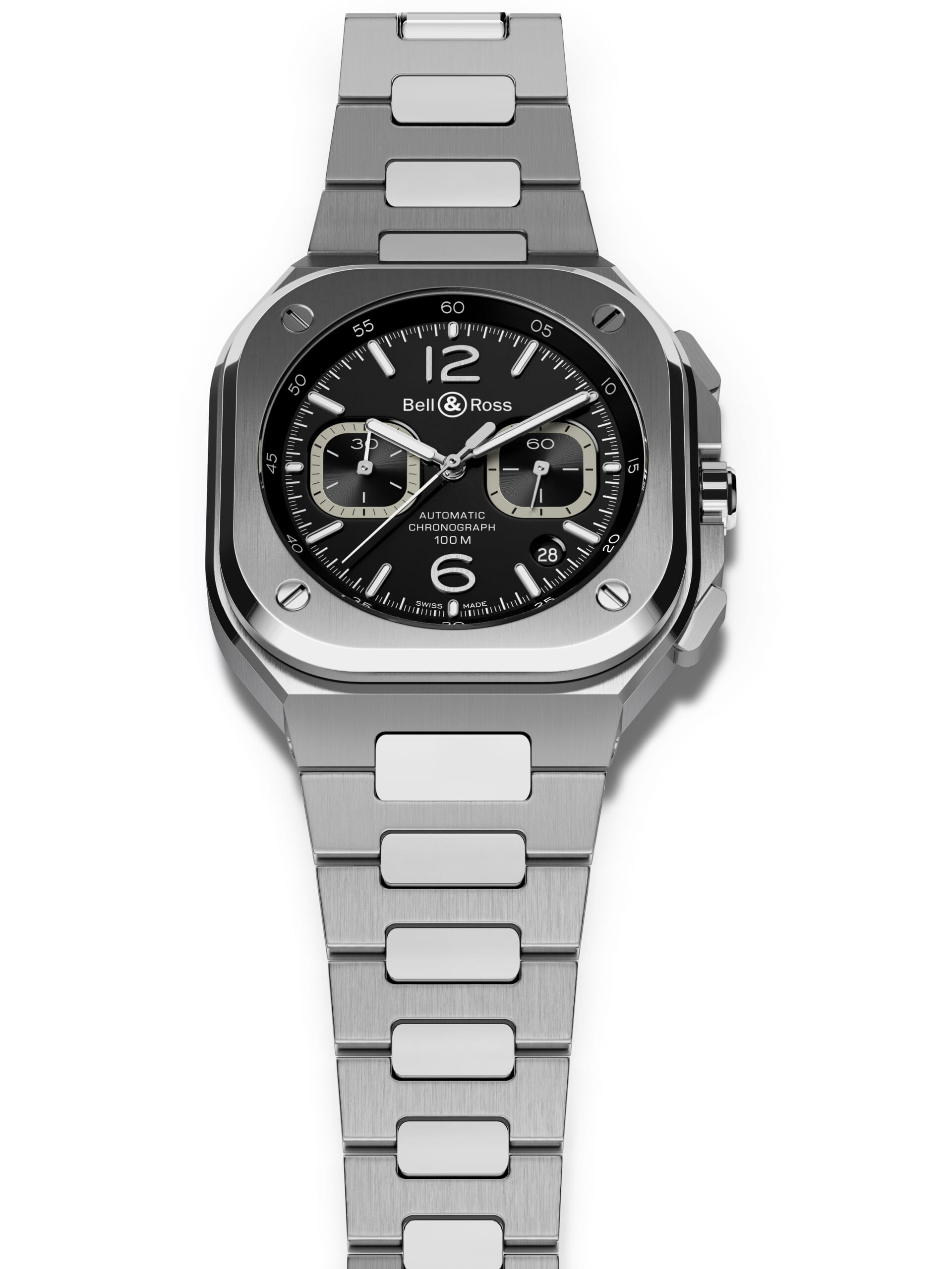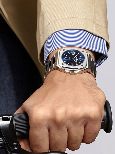 Bell&Rossの象徴的なケースに、スティールブレスレットを合わせた