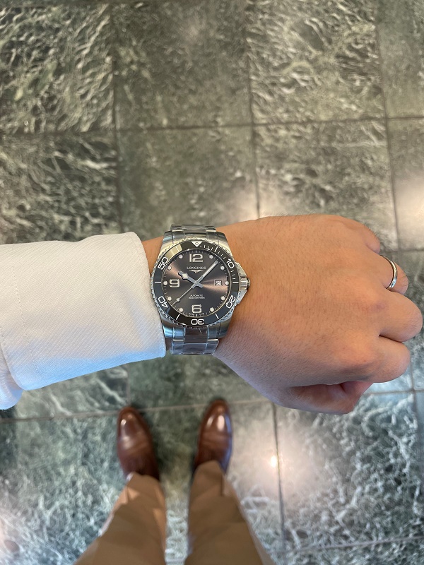 今回入荷したモデルは今年から新たに変更され始めているシリコン製のヒゲゼンマイを採用したムーブメントに変わっており、磁気にも強くなり、メーカー保証は安心の5年間となっています。これだけの変貌を遂げ、これだけの性能を持ち、価格は税抜き19万円。セラミックベゼルを装着した高機能ダイバーズとして、ありえないくらいの高いコストパフォーマンスを発揮しています。スタイリッシュでかっこいい、本格的なダイバーズをお探しの方は、ぜひ店頭で、ロンジン「ハイドロコンクエスト」をご覧ください。