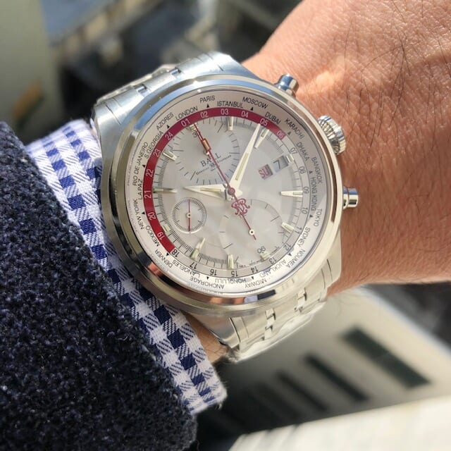 世界24の都市名入りインナー回転ベゼルを眺めて是非、旅行気分を味わって下さい。
