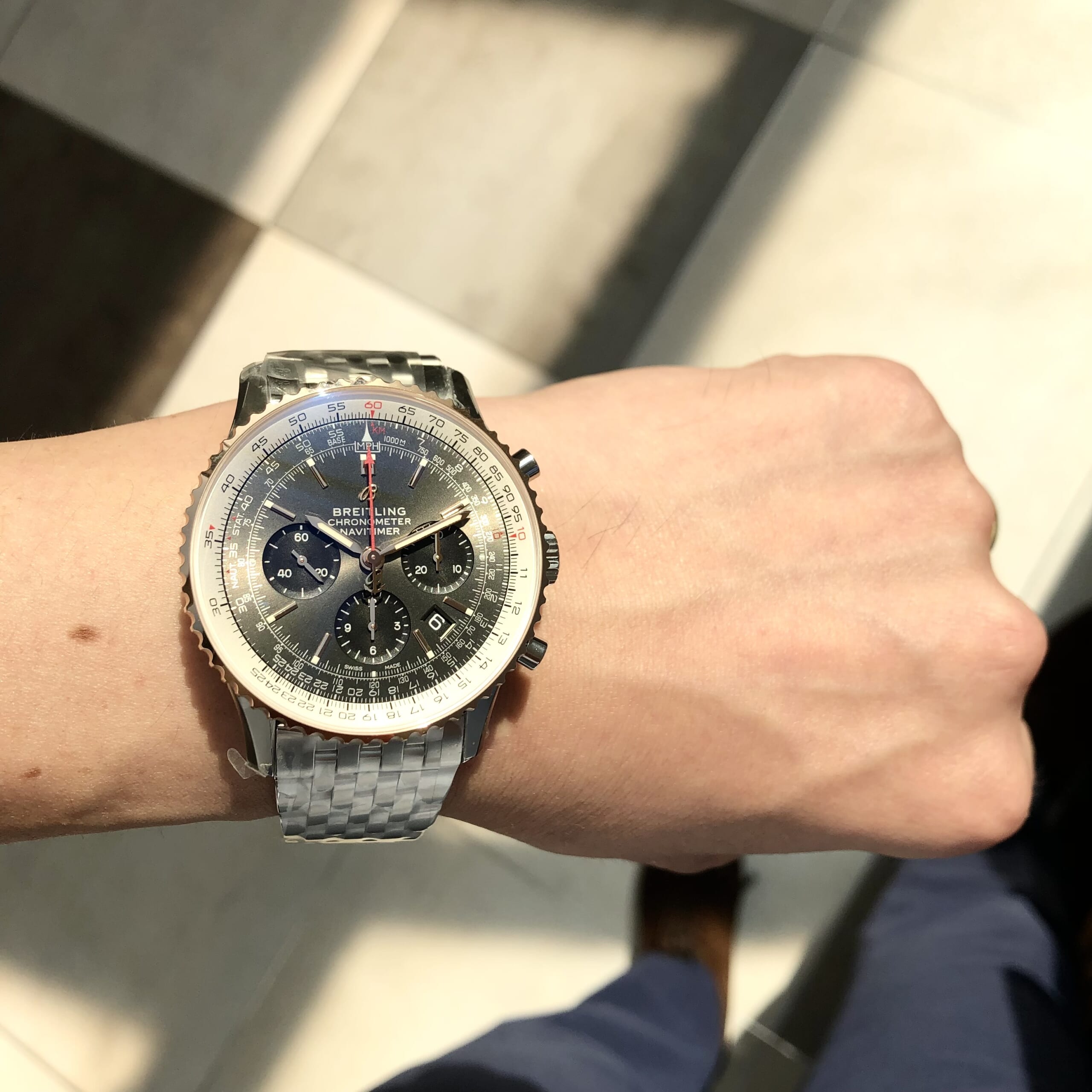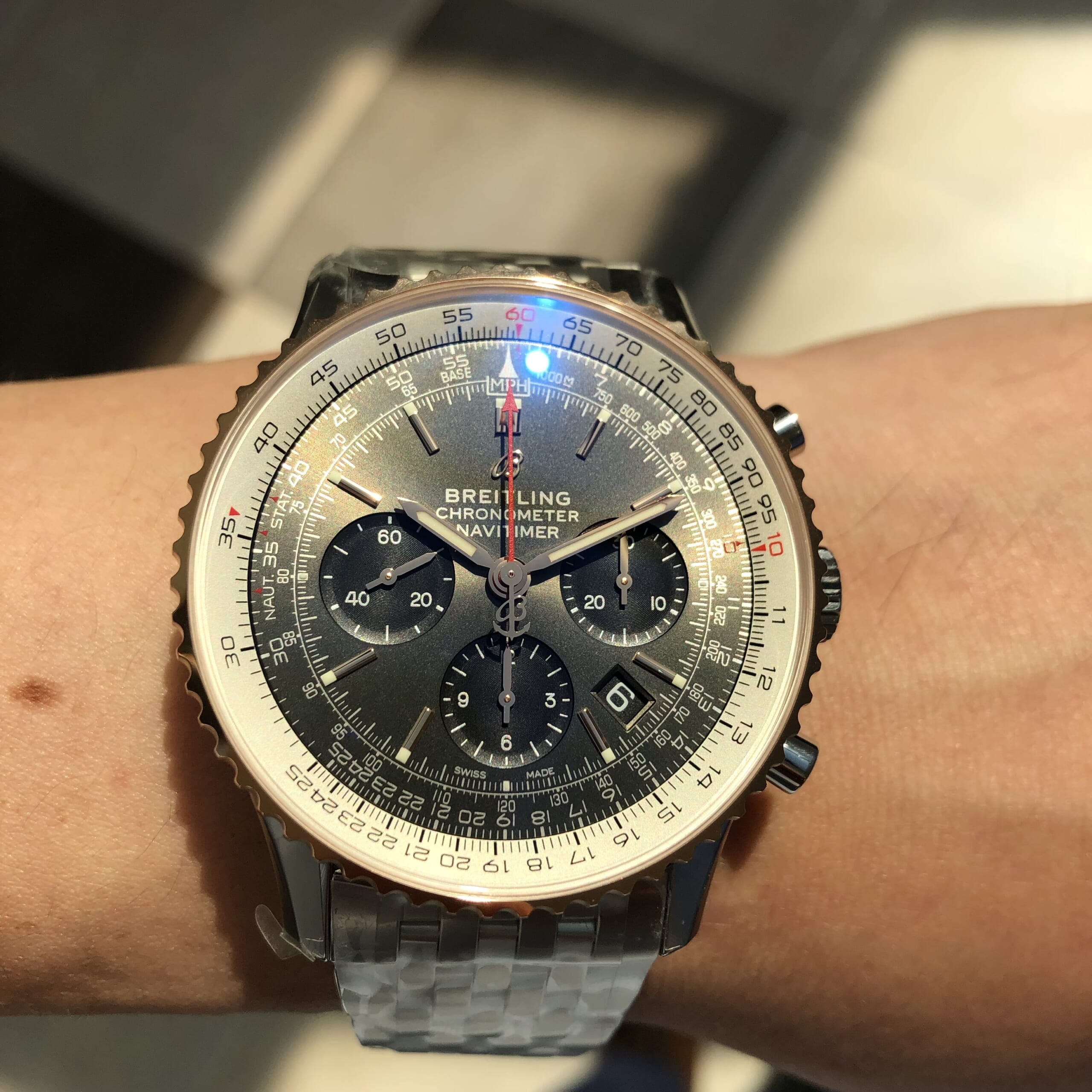 上品なベゼルゴールドのナビタイマー!