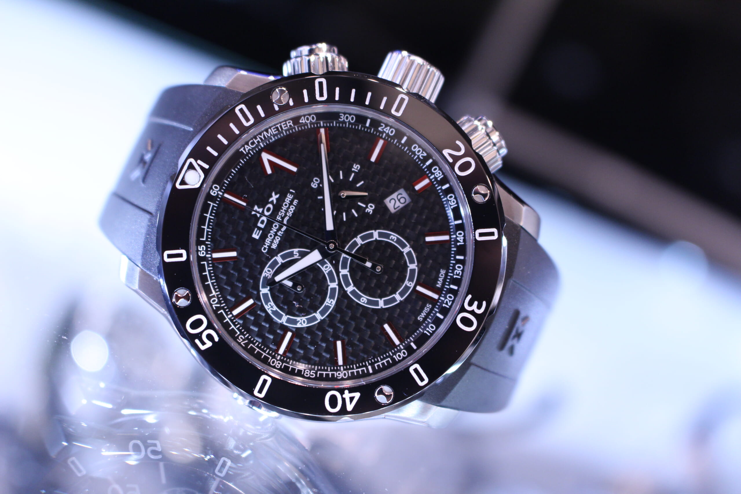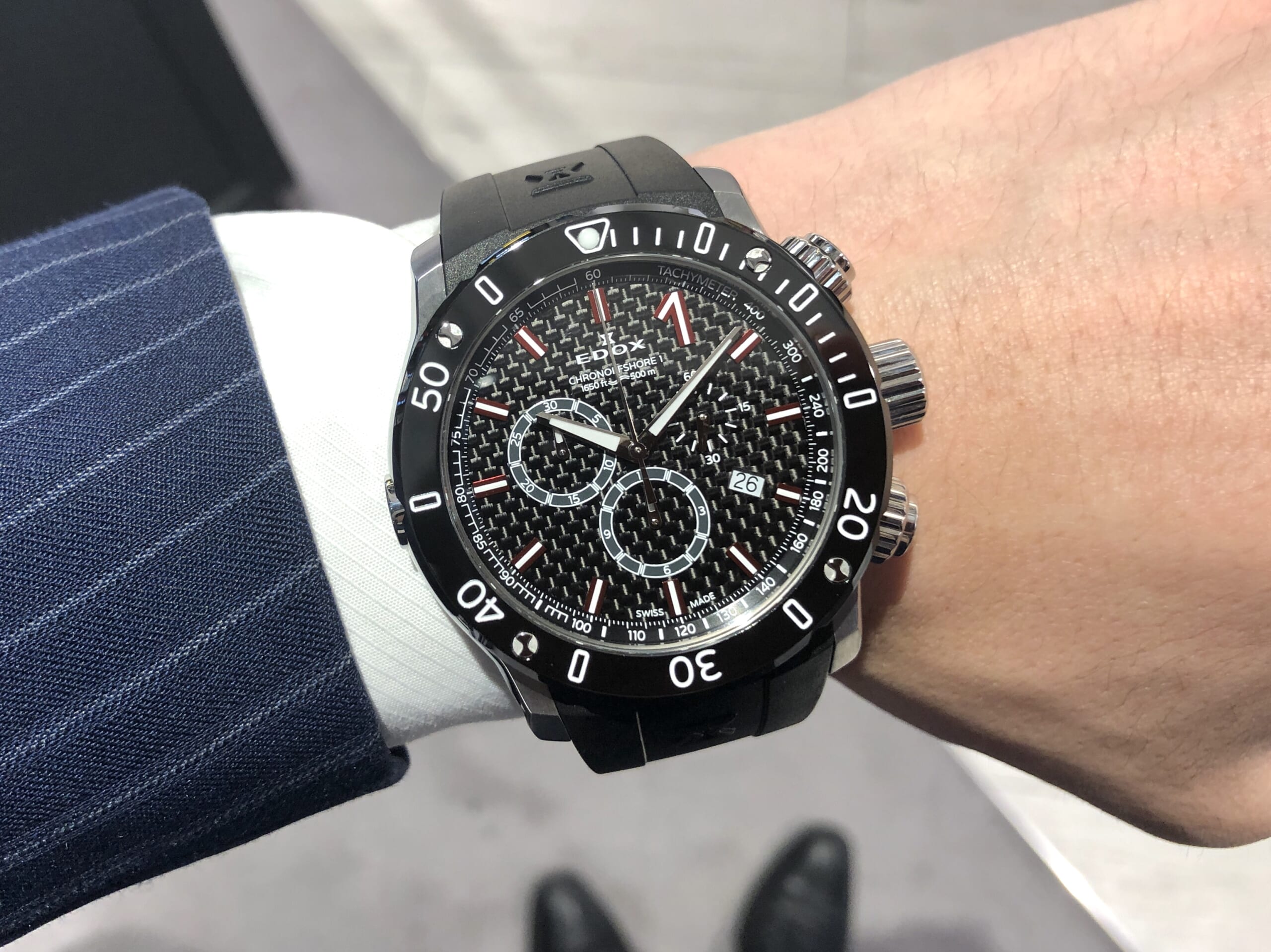 更にエドックスのクォーツモデルでは数が少ないカーボン文字盤を採用
