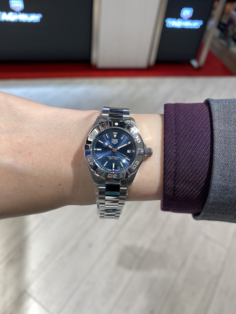 美しいブルー文字盤が夏の海のようで目を惹きますね~