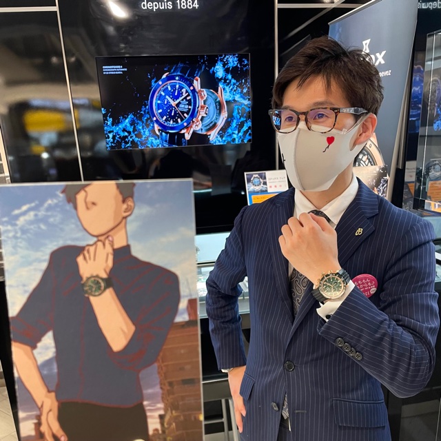 腕元の露出が多くなる夏こそ45MMという存在感あるサイズとグリーン文字盤という印象的な配色がとても目を惹く1本です。