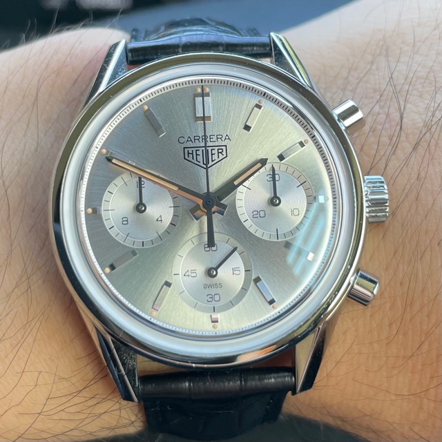 発売された当時の初代カレラのデザインを忠実に再現していますが、全く古い感じが無いのがこの時計の凄い部分です。
