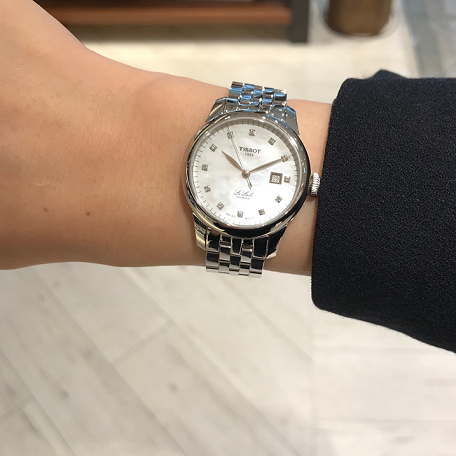 ホワイトマザーオブパールの文字盤にさり気無いダイヤインデックスが美しいですね!