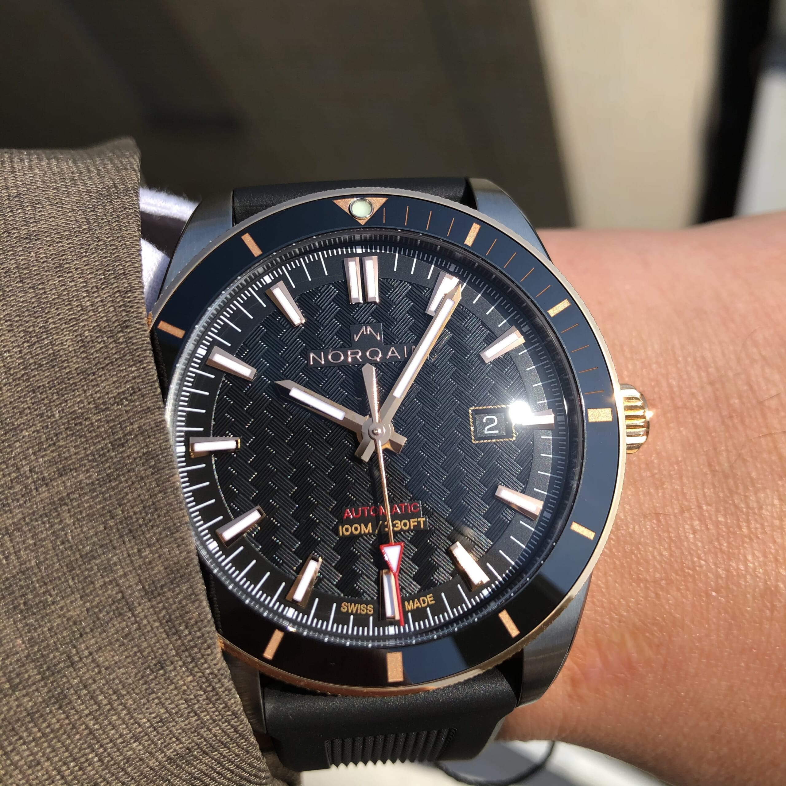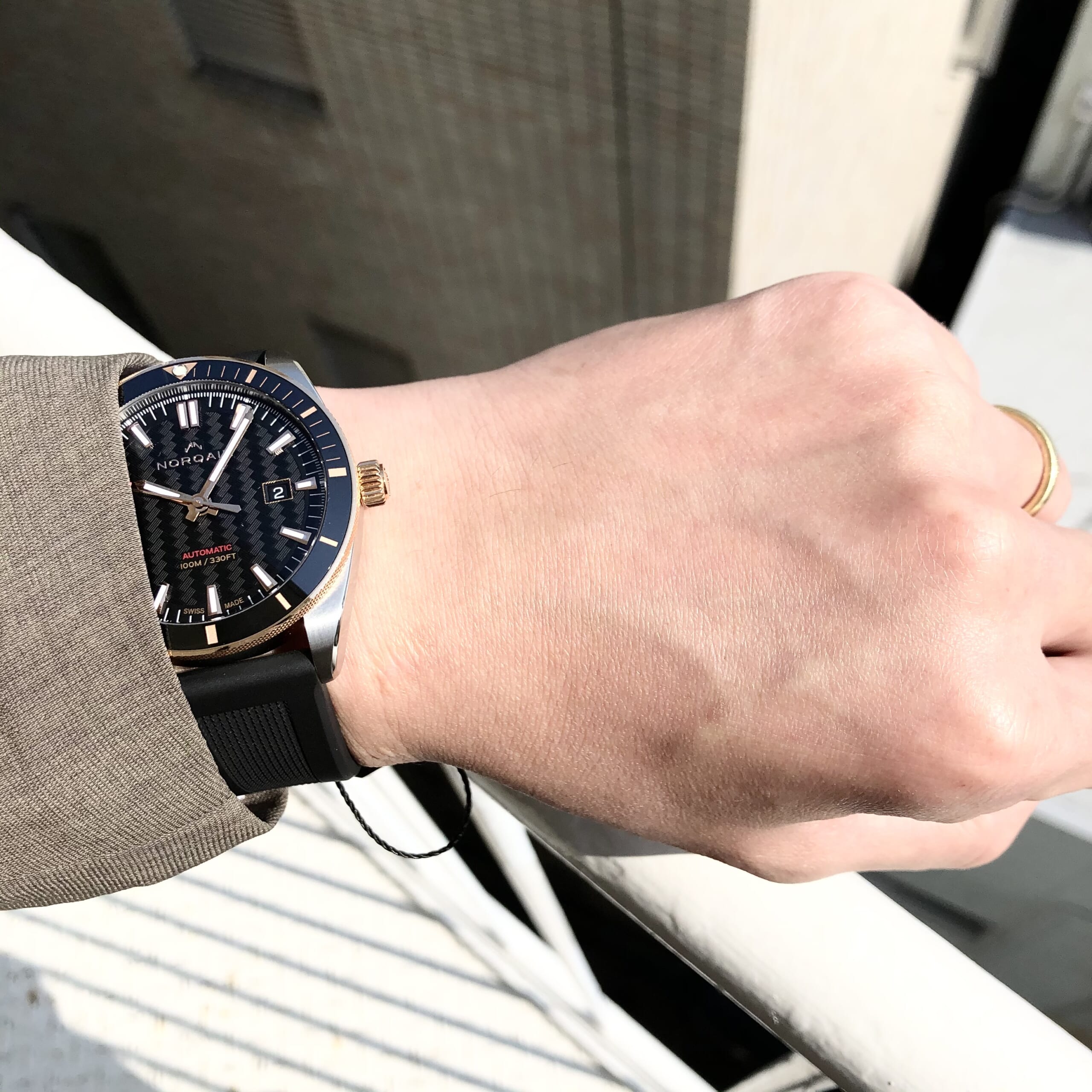 腕元からさりげなく見えるゴールドがかっこいいノルケイン