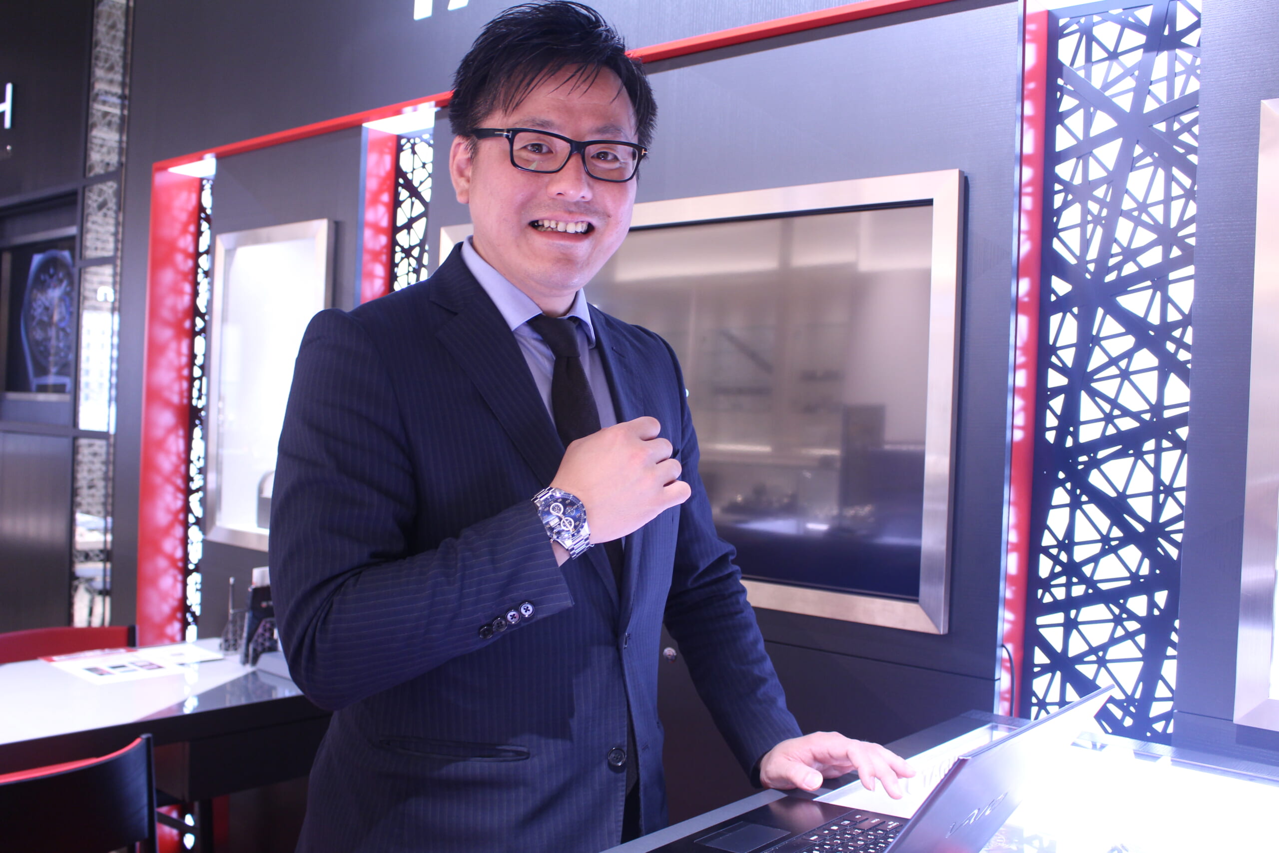 特徴的なアラビア数字のインデックスは腕を動かすたびに輝き高級感溢れる印象を感じます