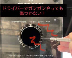 セラミックのベゼルは傷とは無縁とも言える安心の仕様。