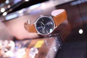 深いブルーが品良く腕元を彩り、角度によってはブラックにも見え雰囲気が変わります!!