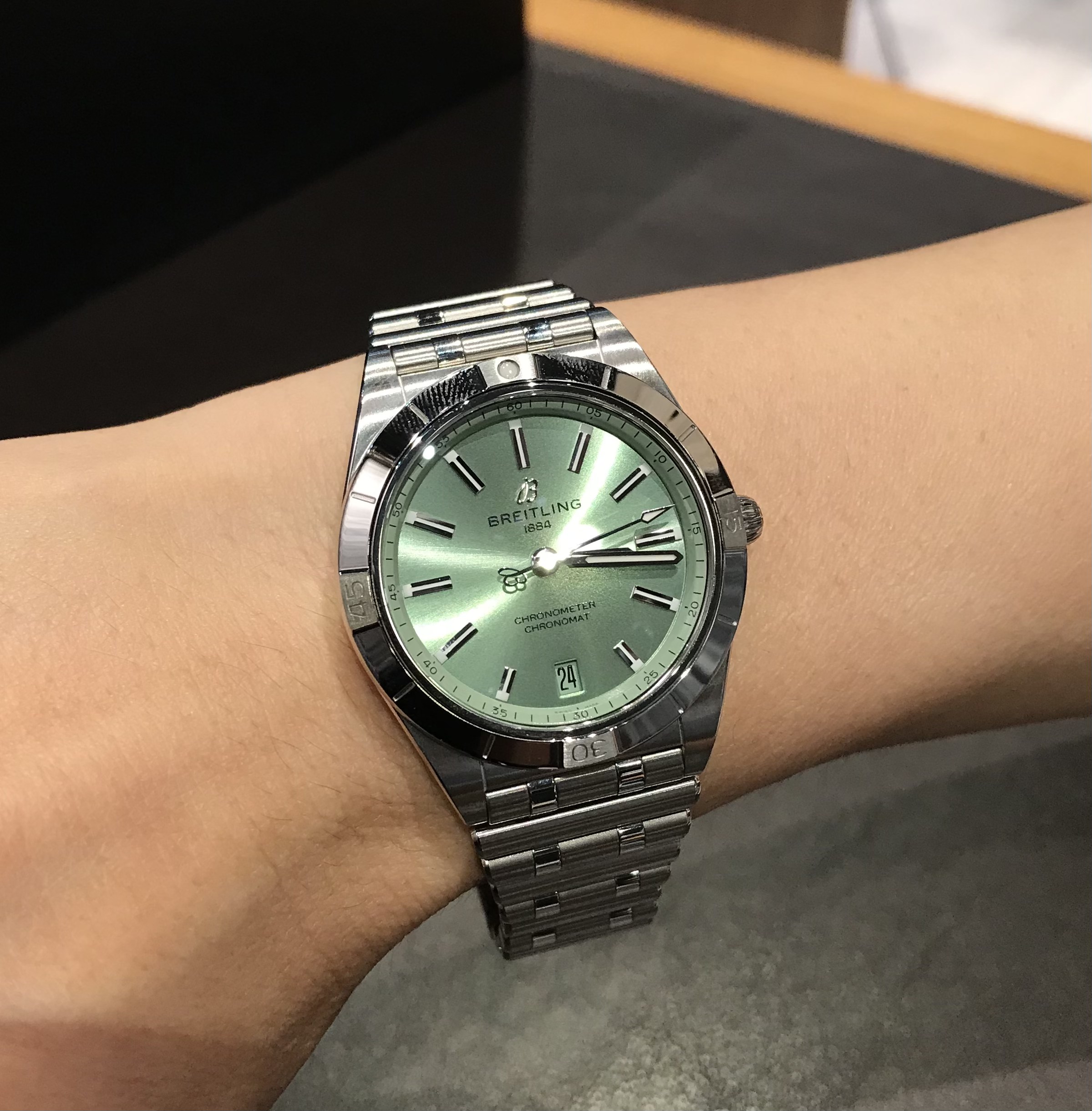 ミントグリーンの文字盤が爽やかで女性らしい時計をお選び頂きました!