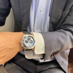 通常モデルと違いプラチナのベゼルに爽やかなアイスブルーが映えますね〜
