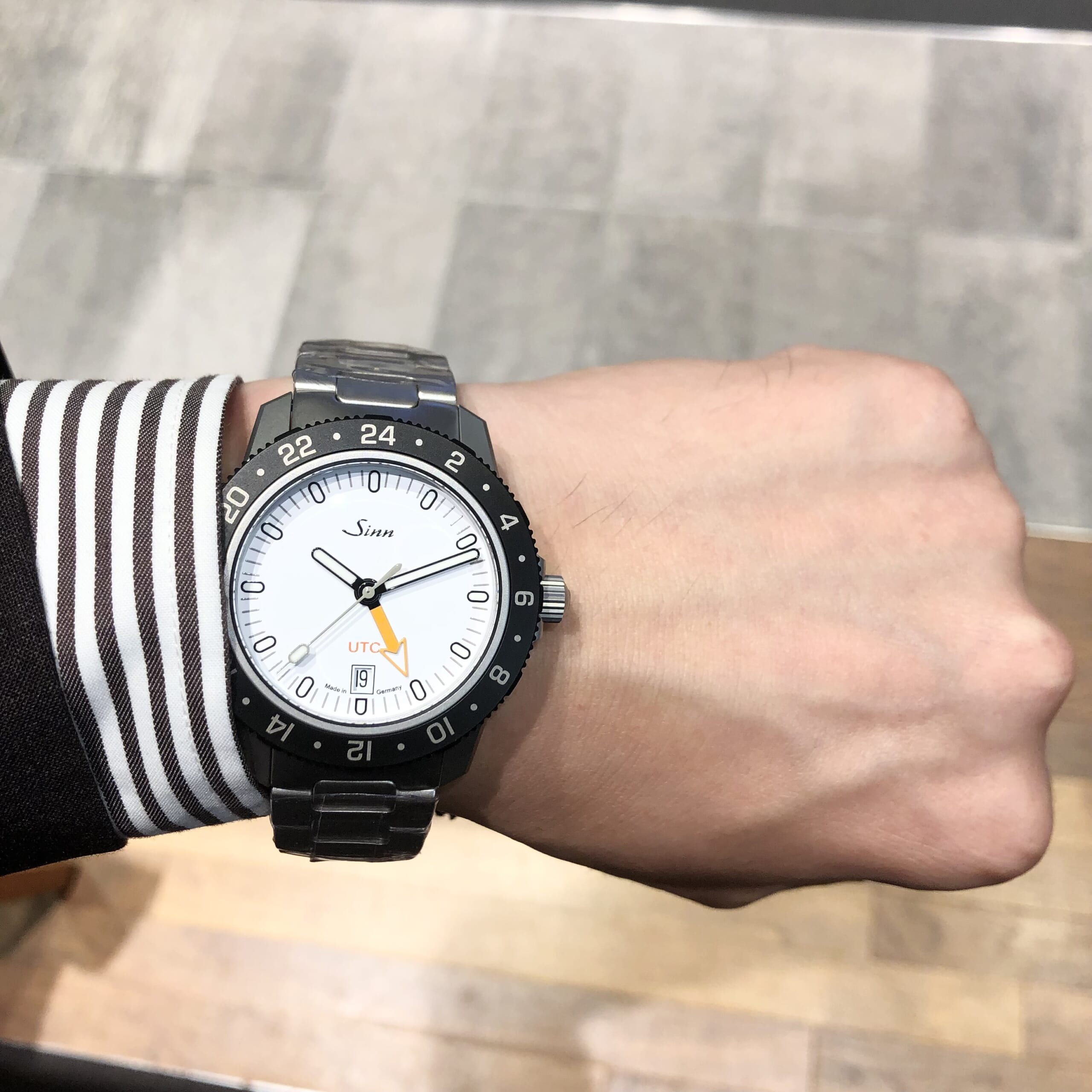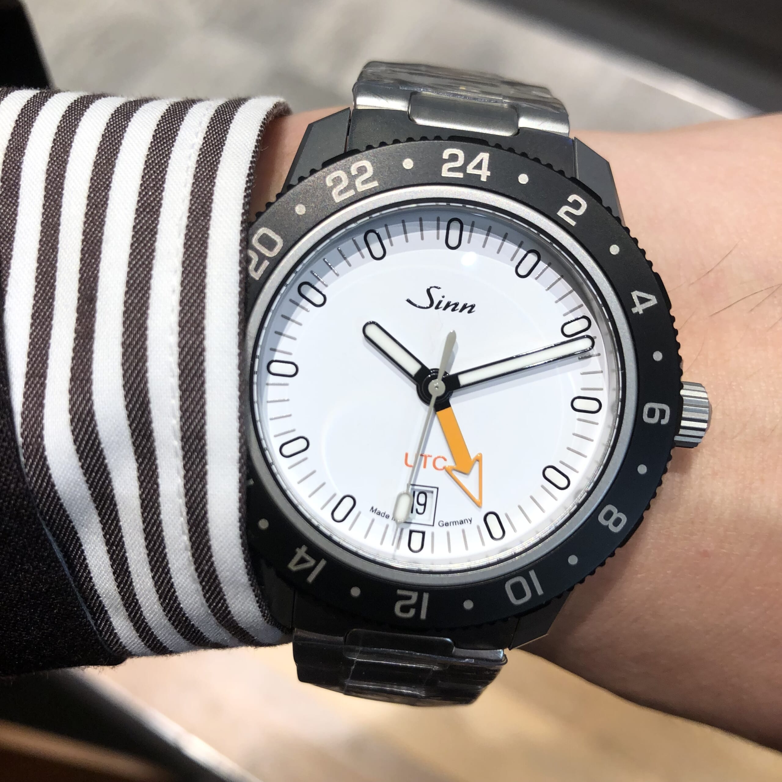 オレンジのUTC針が特徴的なモデルです。