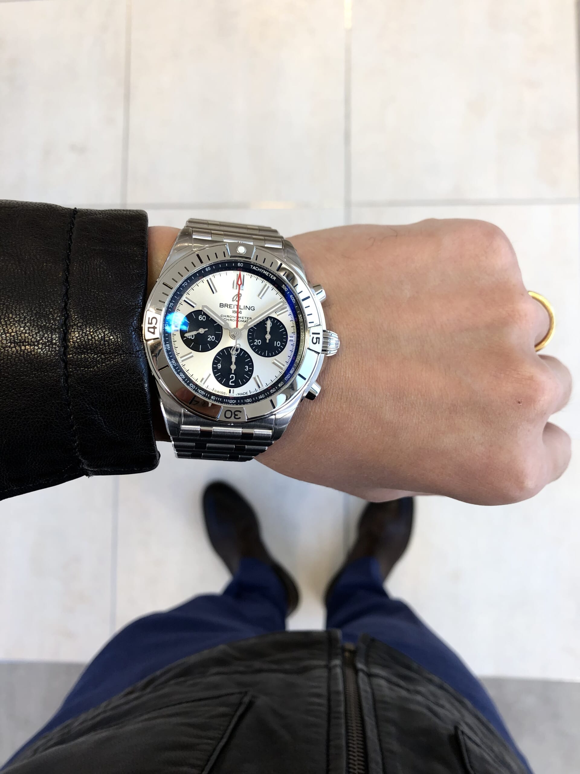 腕元はさりげなくブライトリング。