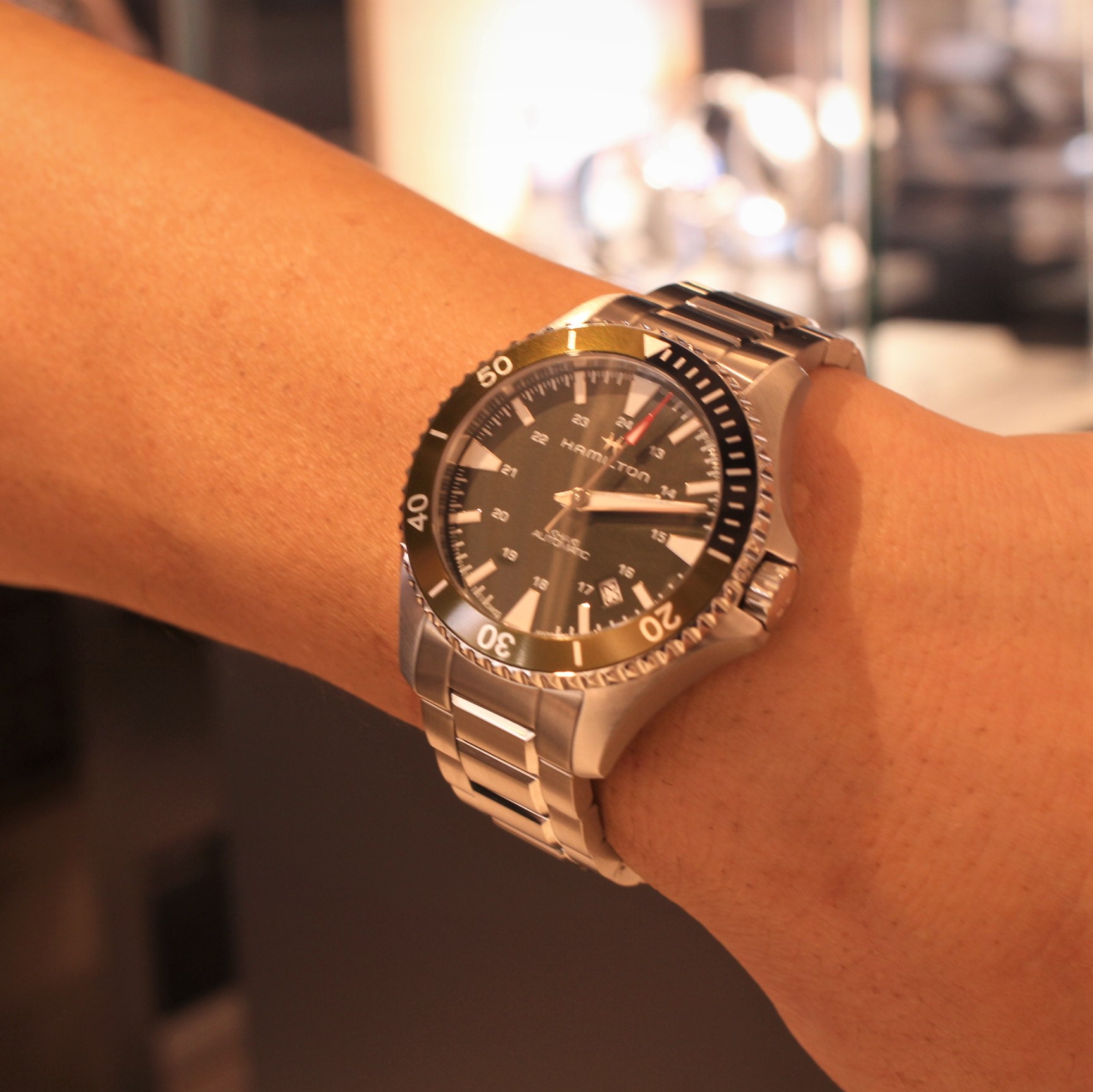 A様は既に機械式腕時計を所有されておりますが、この度新たにハミルトンをコレクションに追加して頂きました。ダイバーズウォッチらしい視認性の高さと40MMという大きすぎないケースサイズは日常的に使用して頂きやすいですね。
