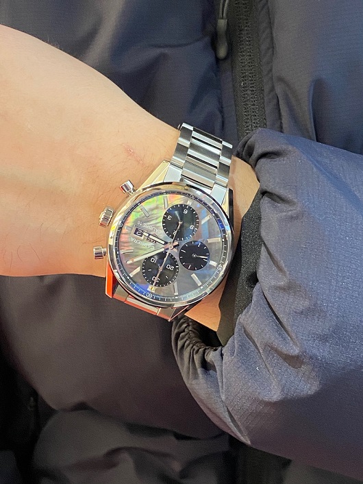 また、天然素材の文字盤ですので、一つとして同じ輝きのないオンリーワン・・・更にはタグホイヤーでは数少ない珍しいMOP(マザーオブパール)文字盤!
