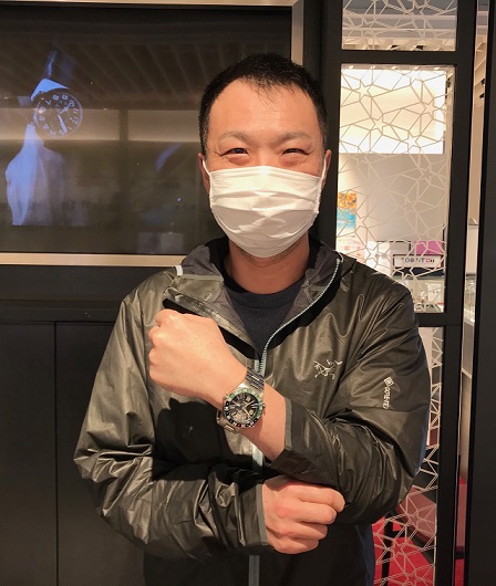 いや~、ブラックのGMTベゼル、文字盤に映えるグリーンが渋くてカッコいいですね~
