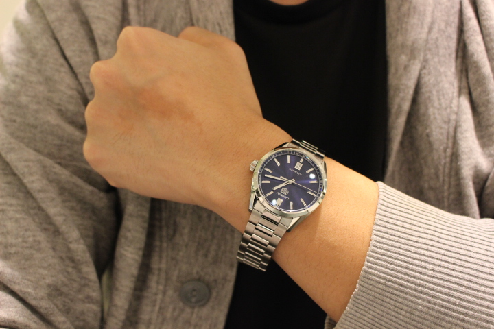 I様にとって初となる機械式時計。お選び頂いたのは2021年に新しく生まれ変わったカレラの新作です。カレラはタグホイヤーの中でも非常に人気が高く、上品でシンプルな時計なので服装を選ばずお使いいただけます。深見のあるブルーがとっても綺麗で、文字盤を眺めていても飽きませんよ!!ベルトのクリーニングやお困りごとがございましたら、気軽にお立ち寄りください。 改めましてこの度は誠にありがとうございました。