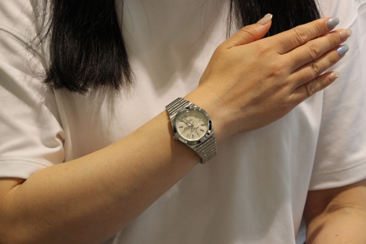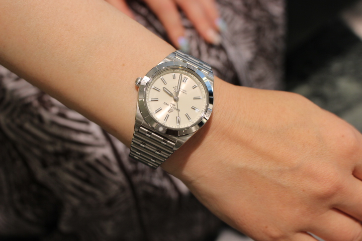 スタイリッシュでありながらエレガントなクロノマット オートマチック36。全体的に丸みのあるデザインなのでハード過ぎず、しなやかな動きのあるルーローブレスレットがフィット感抜群です!!女性の腕にもしっくりと馴染む上品さがポイントです。実はI様、この日もう一本運命を感じた時計がございましたがお写真を取り忘れてしまいました。本当に申し訳ございません。オンオフを使い分けながら時計ライフをお楽しみ下さい。改めまして、この度は誠にありがとうございました。ベルトのクリーニング等いつでもお気軽にお立ち寄りください。お待ちしております。まだまだブライトリングフェア開催中ですぜひこの機会にお気に入りを手にしてみてはいかがですか??