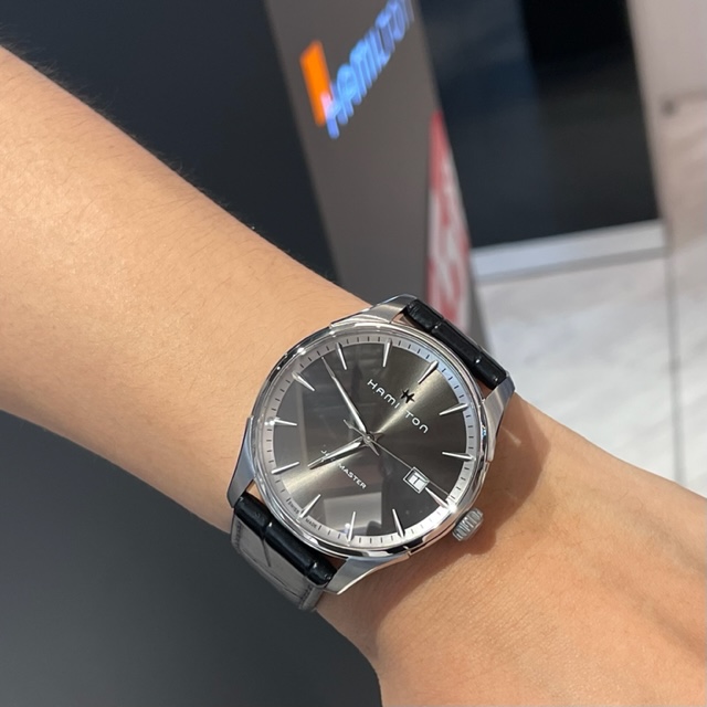 クラシカルでありながら光沢あるグレーの文字盤やスッキリとした細めの指針などから都会的な印象をも受ける洗練された1本です!