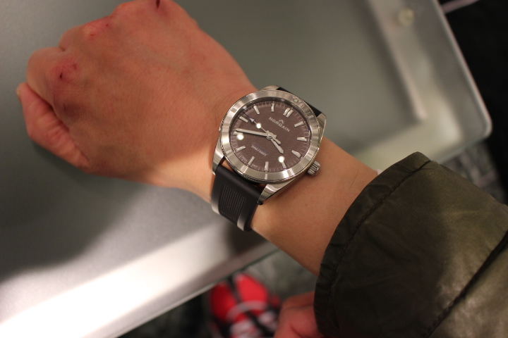 ノルケイン アドベンチャースポーツJP型番:NNJ1000S01A/GJ101/102Sサイズ:42㎜文字盤カラー:ウォームグレーインデックス:バー日付:なし防水性:100m動力:自動巻き