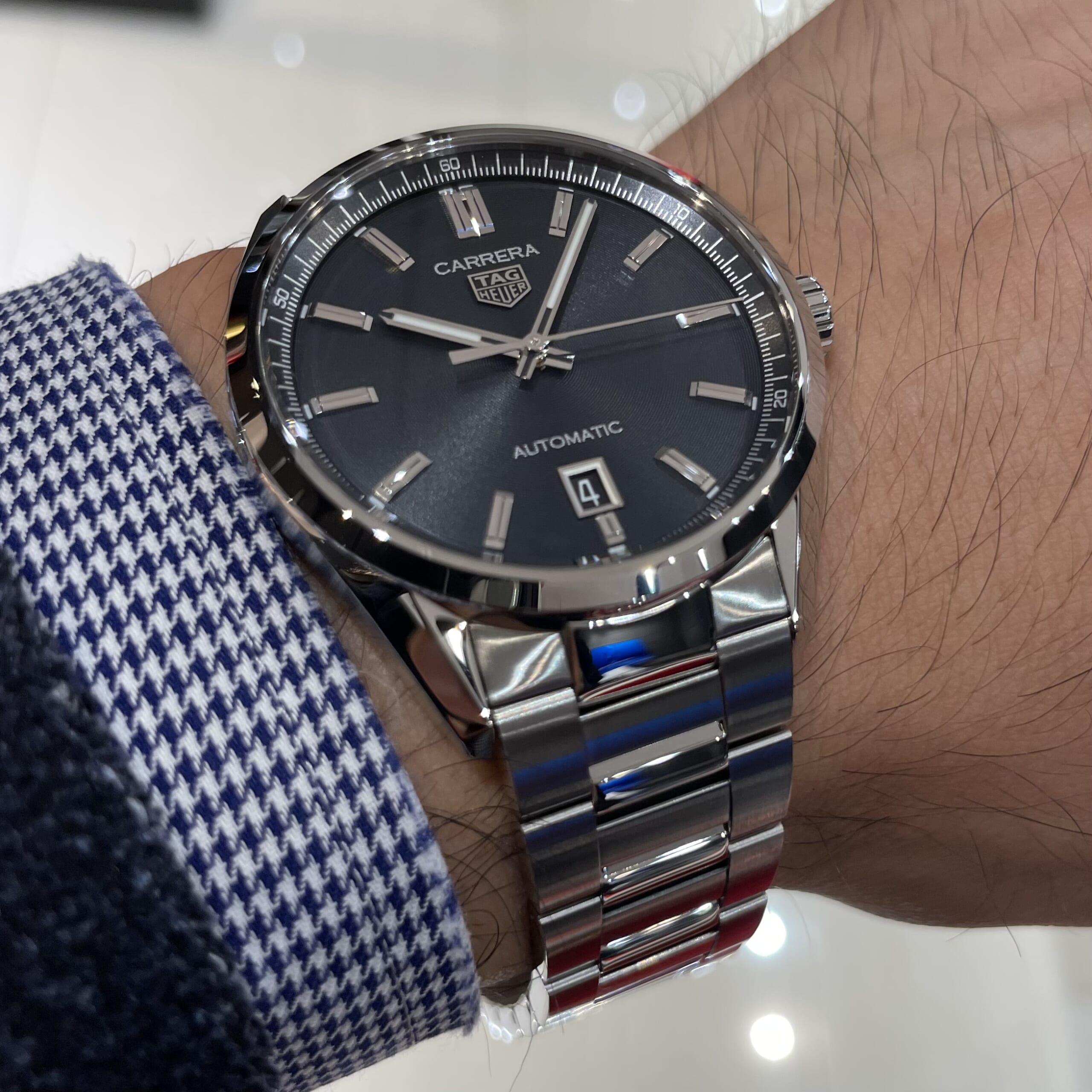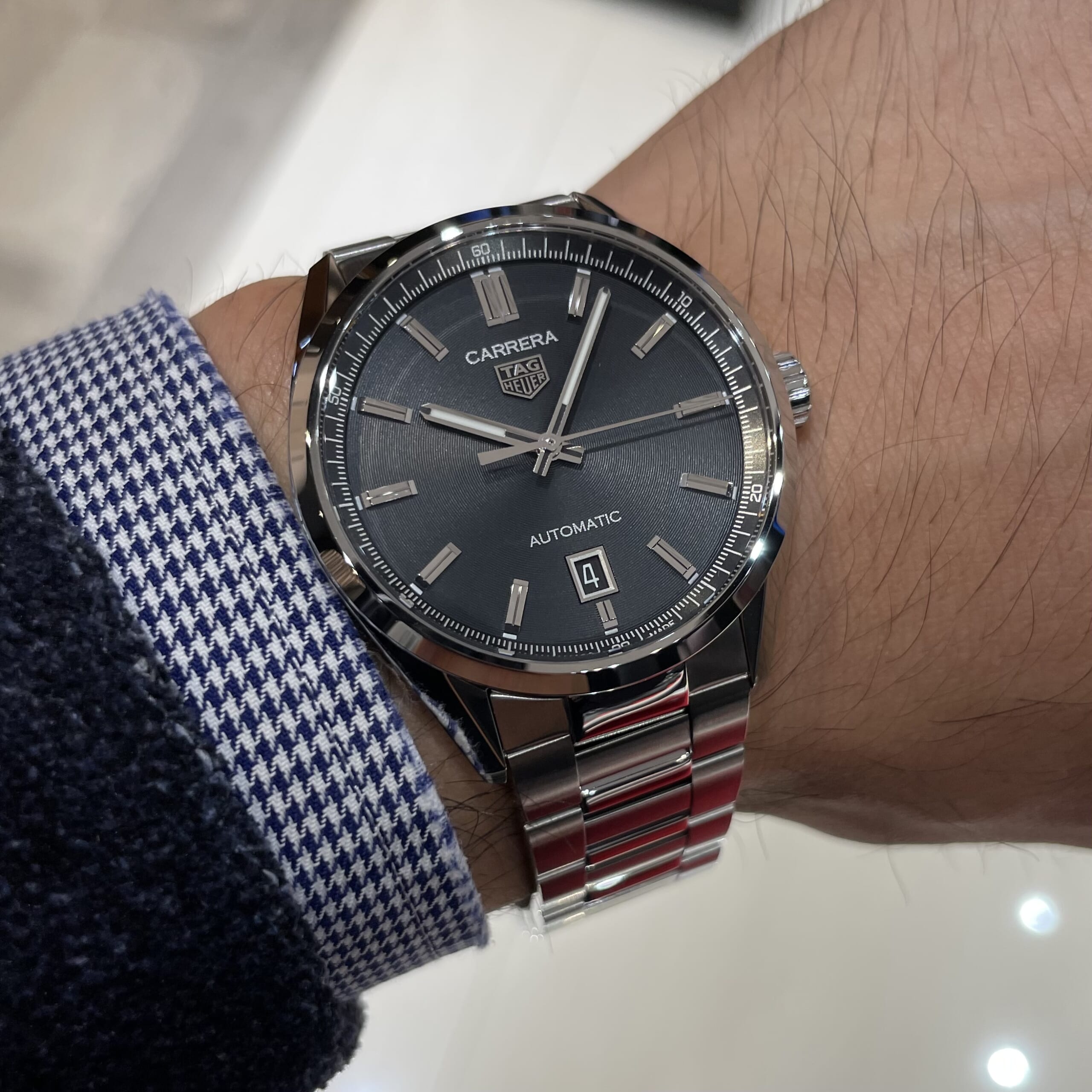 タグ・ホイヤーの人気No,1モデルこそ、この青文字盤のキャリバー5 デイデイトです。