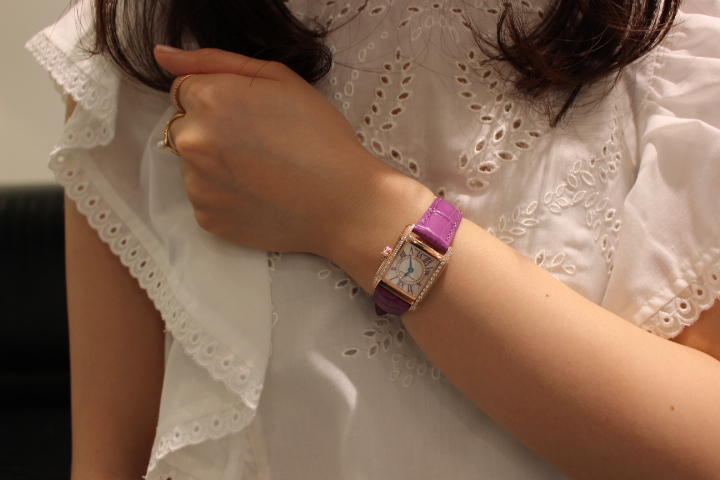 フレデリックコンスタントさんの中でも大人気の『クラッシック カレ レディース』その中でも日本数量限定のこちらのモデル。何と言っても一番目を惹くのはラベンダー色のストラップ。そしてそして、大注目のポイントはインデックスのお色もラベンダー。ここはN様もお気入りポイントでしたね。ケースや文字盤に贅沢にあしらわれたダイヤモンドとマザーオブパールが特別感が増し、記念の節目の時計にピッタリでしたね!!N様の雰囲気にとってもお似合いでした!!この度は誠にありがとうございました。 まだまだお得なフェアも開催中です!!詳しい内容はこちら↓↓↓