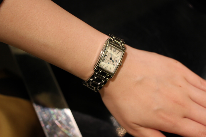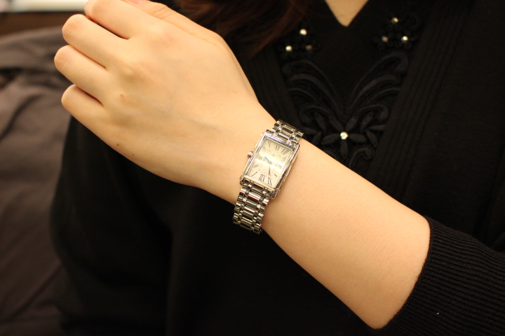 皆様、遅ればせながらあけましておめでとうございます今年も宜しくお願い致します。西尾店の都築です。 先日N様にロンジン ドルチェヴィータをご購入頂きました。型番:L52554716サイズ:20.80×32.00㎜文字盤カラー:シルバー「フランケ」インデックス:ローマン日付:なし防水性:3気圧動力:クオーツN様の白く透き通ったお肌にとってもお似合いのドルチェヴィータ。お誕生日の記念としてご購入頂きました。大きすぎないサイズ感が、オン オフと使えてとっても便利です。ジュエリー感覚でつけられるブレスレット時計は、今からのスタイルに品よくマッチしますね。ドルチェヴィータと共に楽しい時間を刻んでください。おめでとうございます!そしてN様この度は誠にありがとうございました。またのご来店を心よりお待ちしております。 イベントも今週末までです。気になる方はこちら↓↓↓↓↓nishio_header■shop info■ A.M.I nextdoor NISHIO 西尾市丁田町五助9 オルフェ1F TEL:0563-53-6051 営業時間:10:00-19:30(火曜定休) 無料駐車場完備