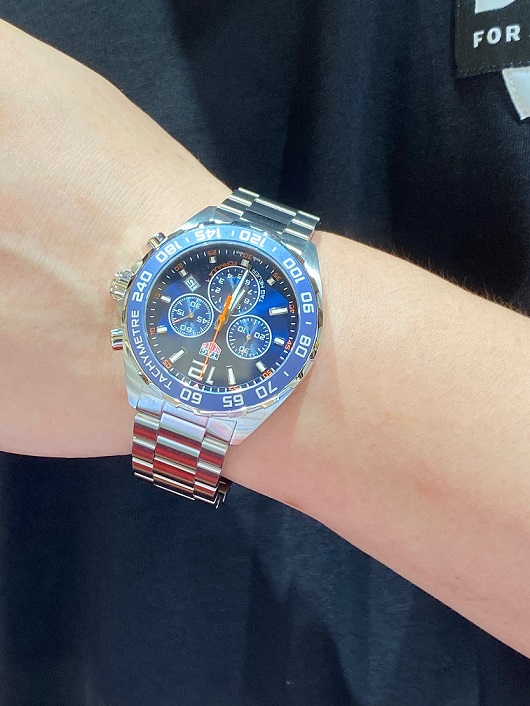 ブルー文字盤にオレンジが映えてカッコいいですね~