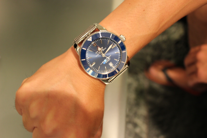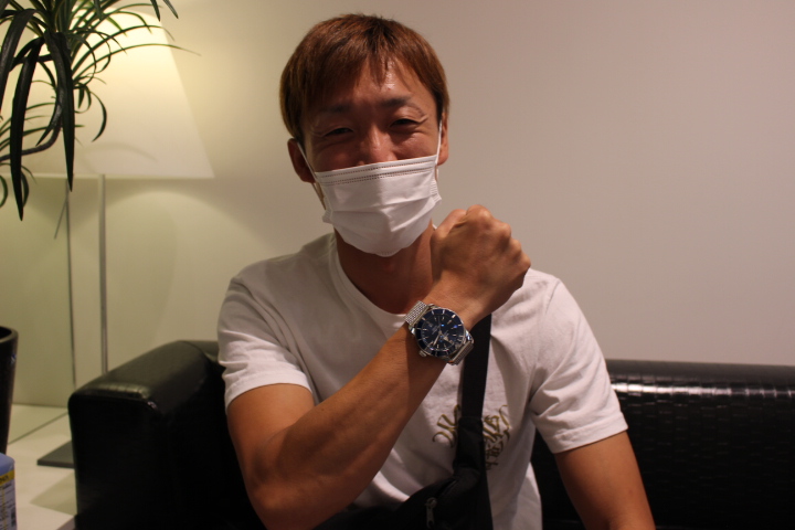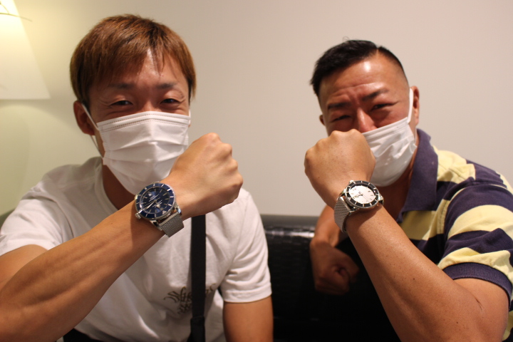 以前より気になっていたブライトリング。お隣で写るK様が営われている車屋さんのお客様であるS様をご紹介下さいました。K様自身もスーパーオーシャンヘリテージをご愛用されており、このモデルの魅力は十分お伝えくださっていました!!ガッチリした腕元に46㎜のサイズ感がバッチリお似合いでした!!爽やかな青色は魅力たっぷりなお色なので、これからじっくりとS様の腕元でご堪能ください!!ベルトのクリーニング等いつでもお気軽にお立ち寄りください。この度は誠にありがとうございました。そして、K様ご紹介下さりありがとうございました。